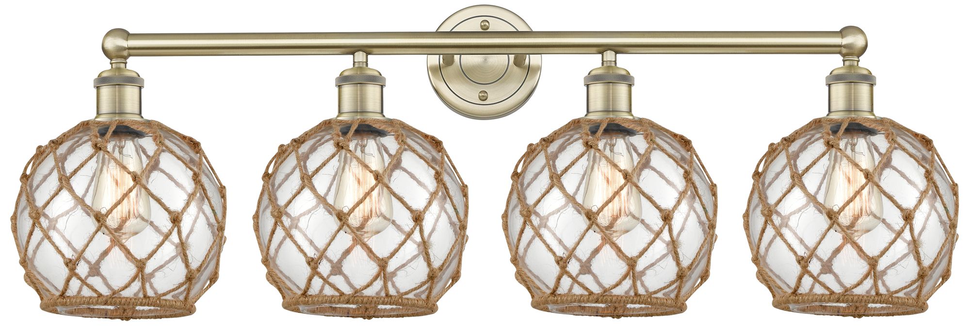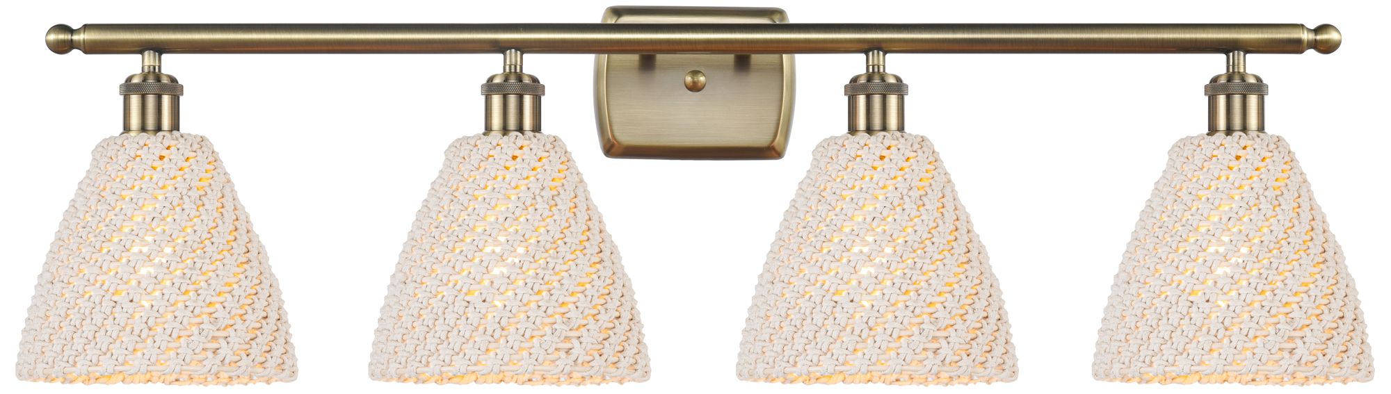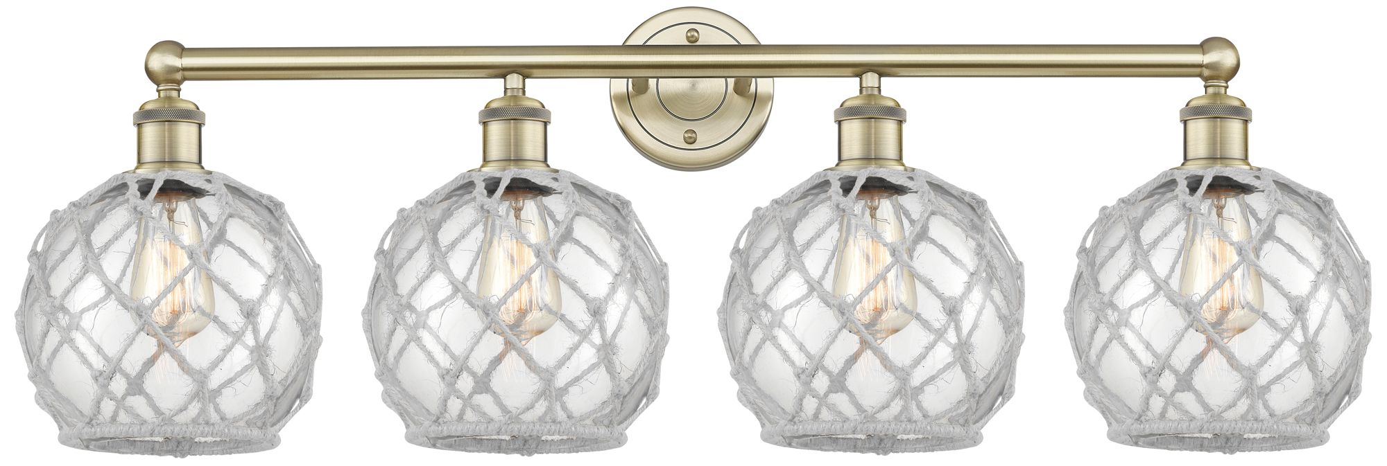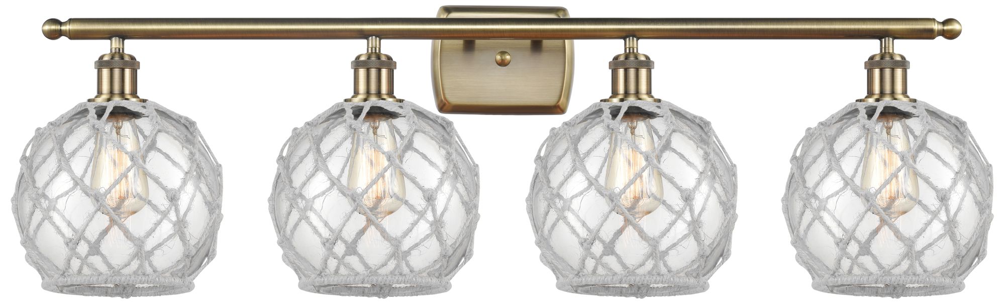 Ballston Farmhouse Rope 38"W 4 Light Brass Bath Light w/ White Shade