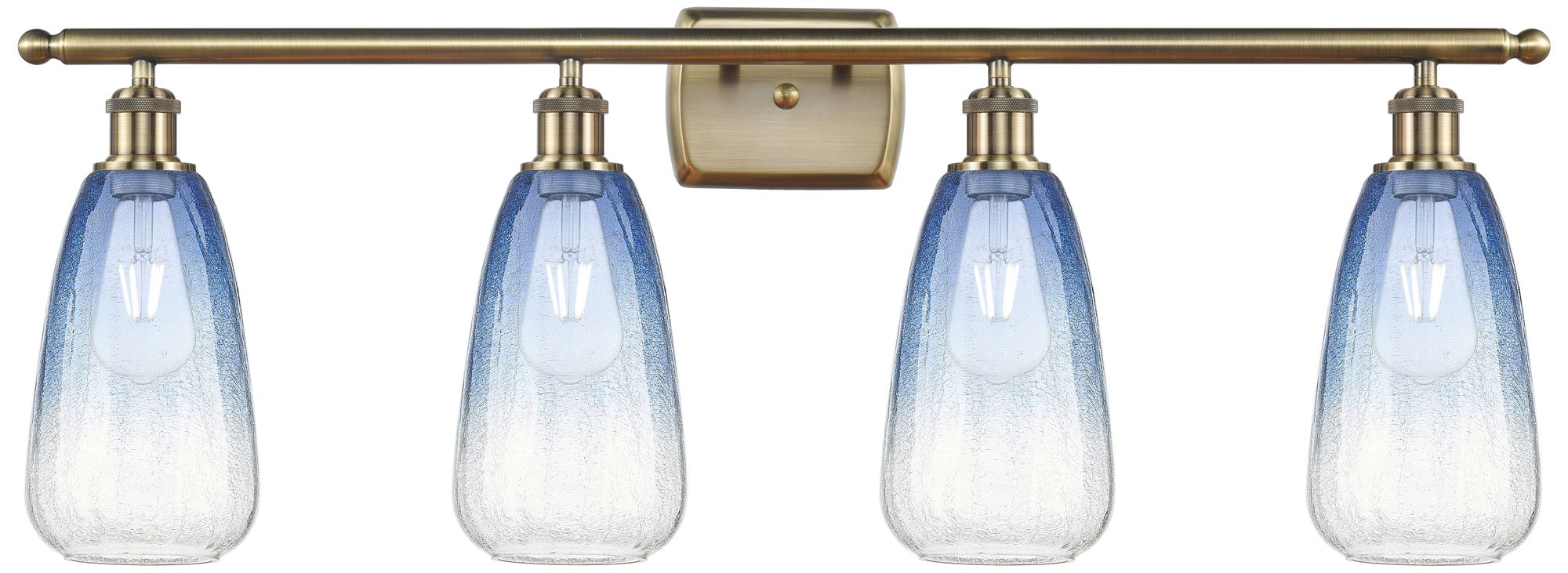 Ballston Brookhaven Almond 36"W 4 Light Brass Vanity w/ Sapphire Shade