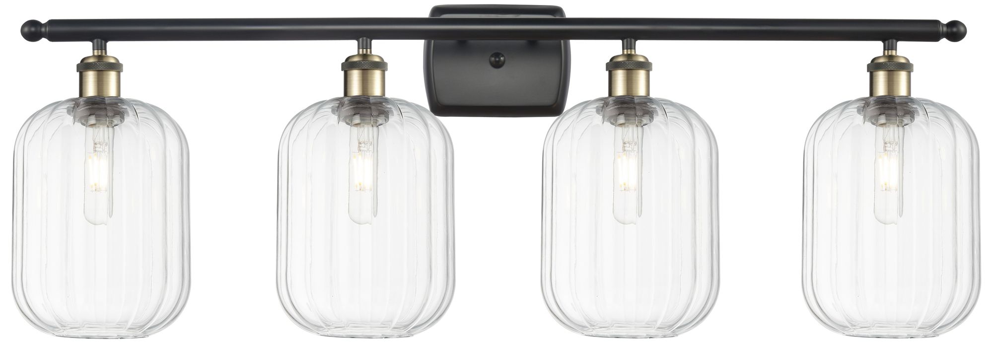 Ballston Preston 37"W 4 Light Black Brass Vanity w/ Clear Jar Shade