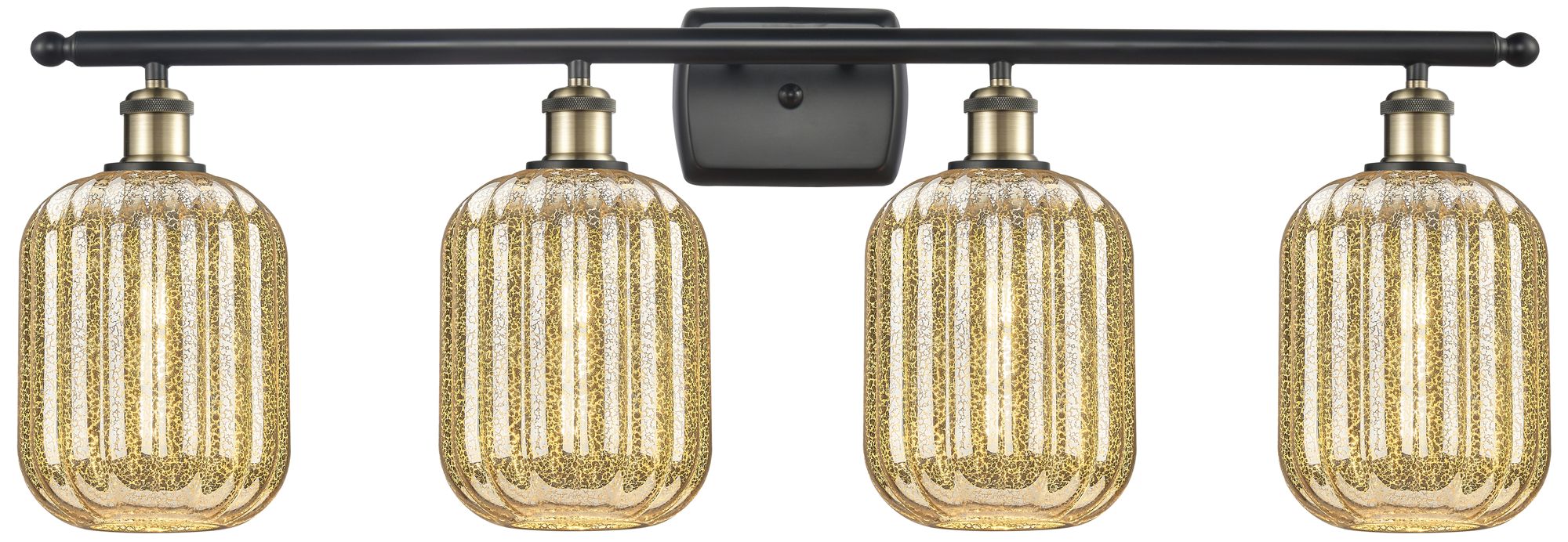 Ballston Preston 37"W 4 Light Black Brass Vanity w/ Mercury Jar Shade