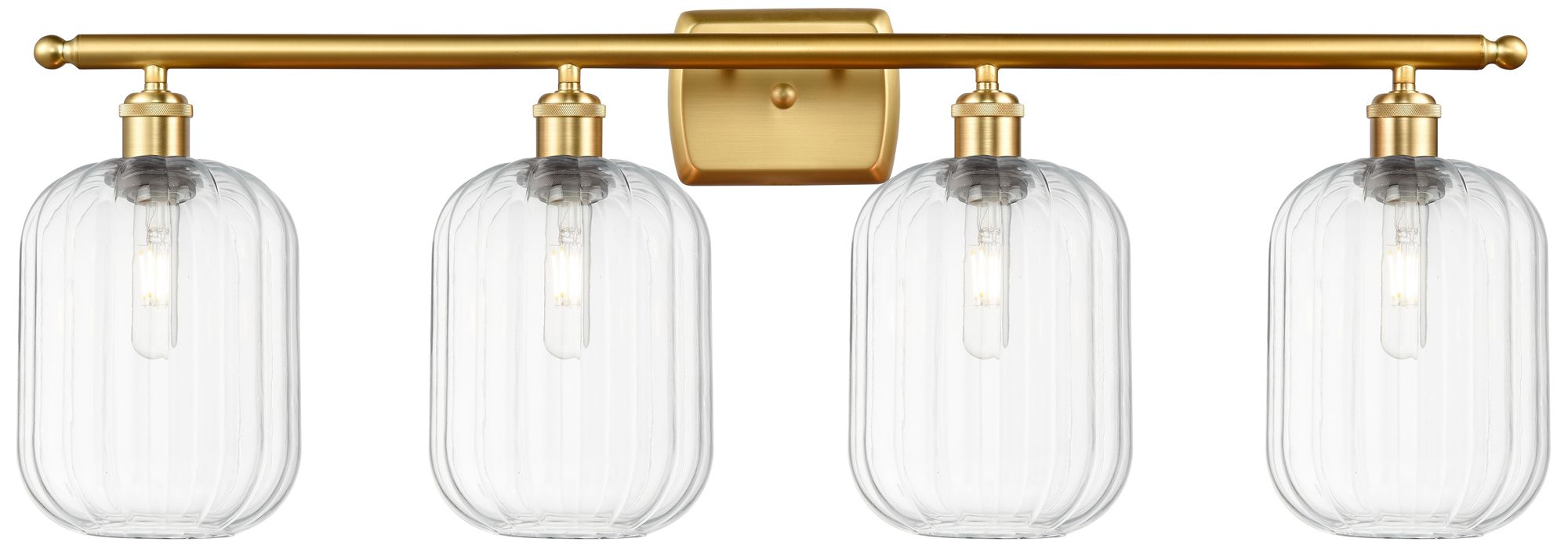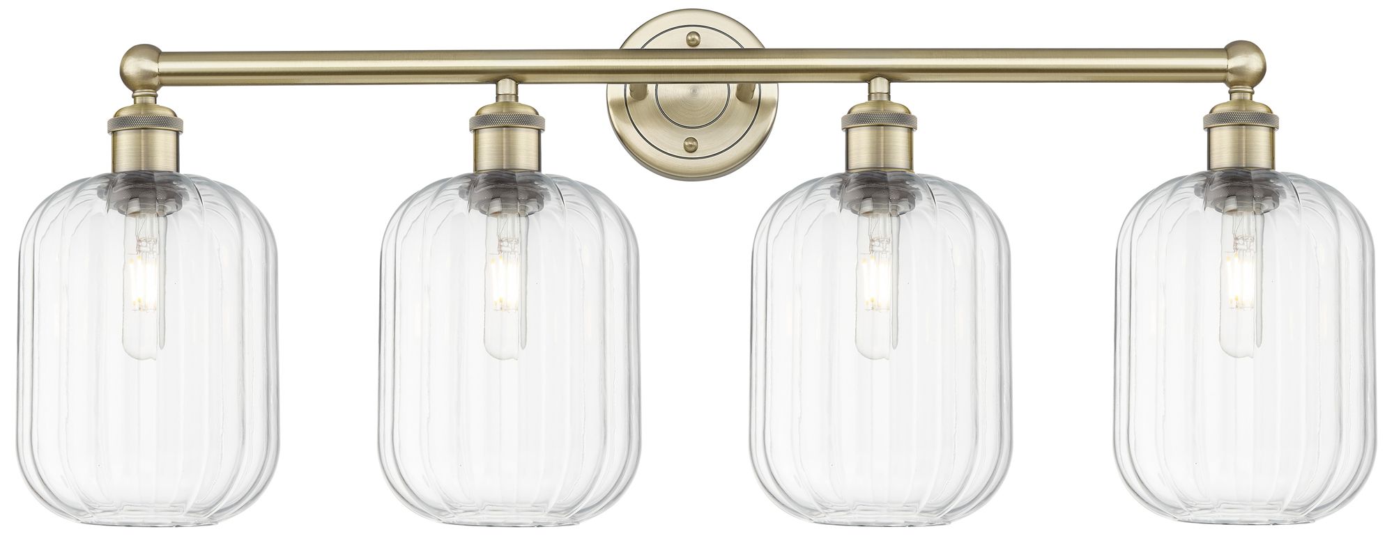 Edison Preston 34"W 4 Light Brass Vanity Light With Clear Jar Shade