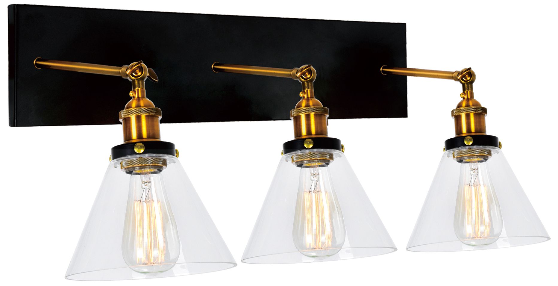 LNC 22" Wide 3-Light Brass and Black Finish Bathroom Vanity Light