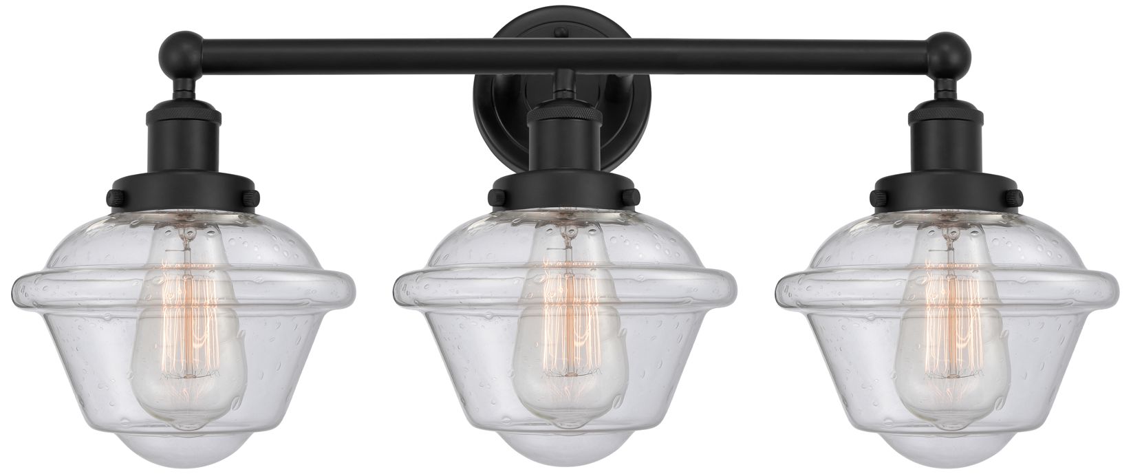 Oxford 25 1/4" Wide Black 3-Light Bath Light w/ Seedy Glass