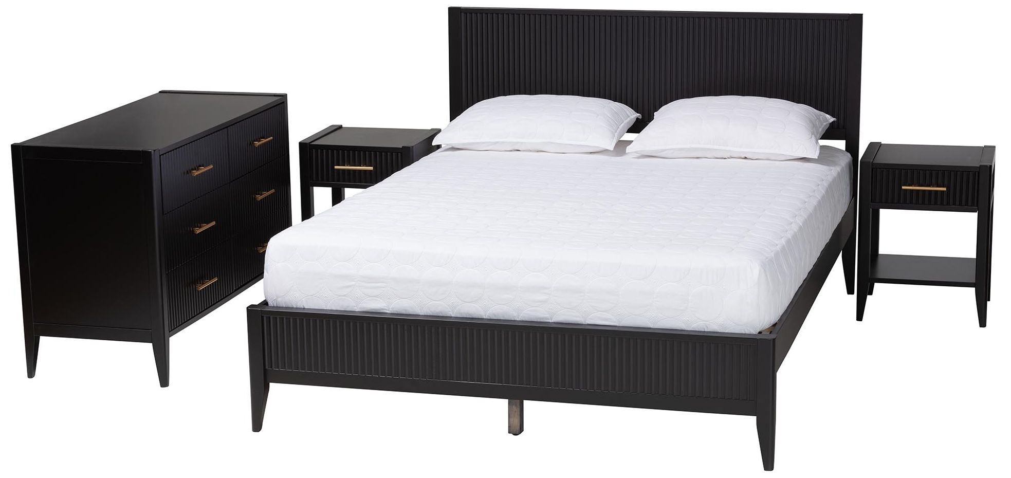 Baxton Studio Primrose Mid-Century Black Queen Size 4-Piece Bedroom Set