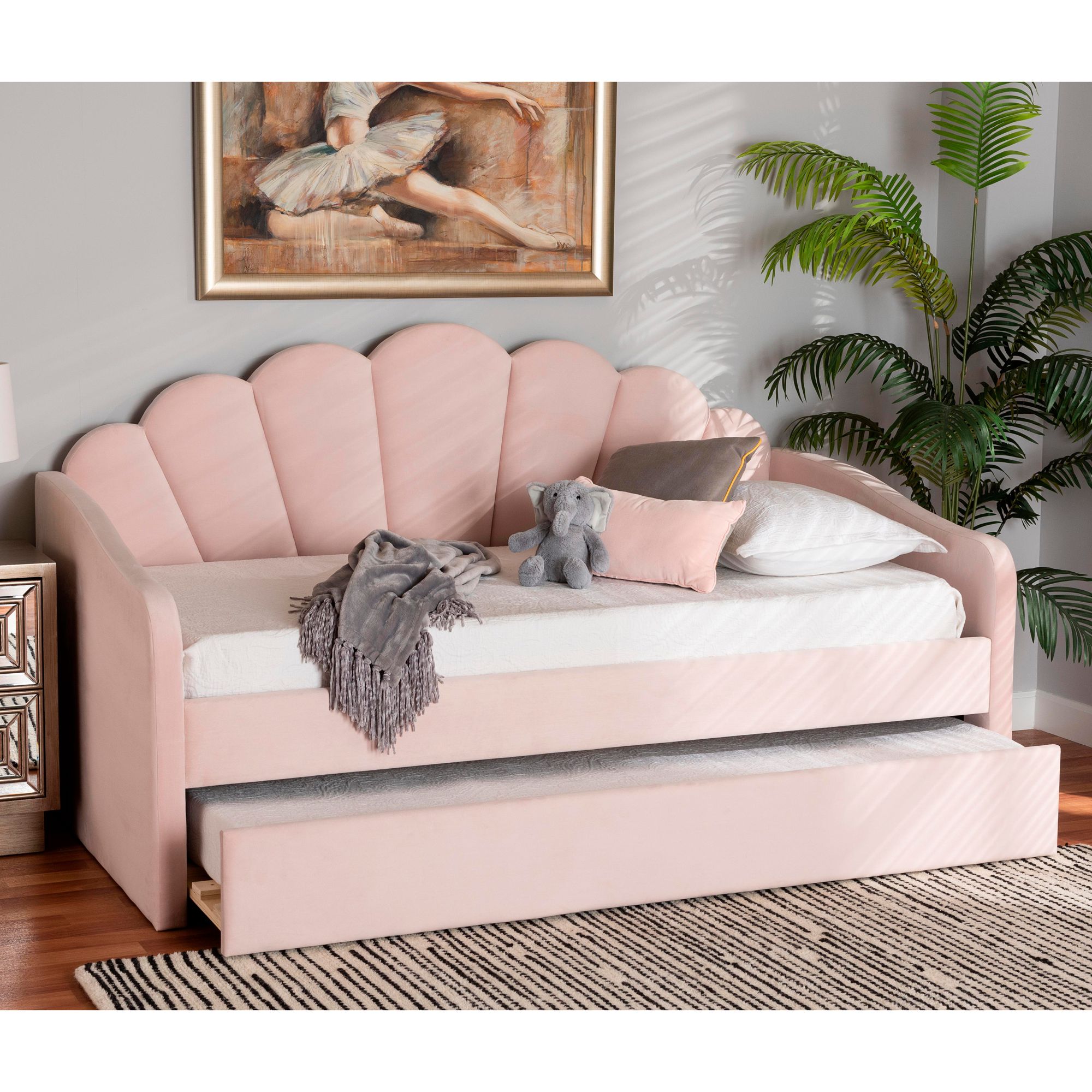 Baxton Studio Timila Light Pink Upholstered Full Size Daybed with Trundle