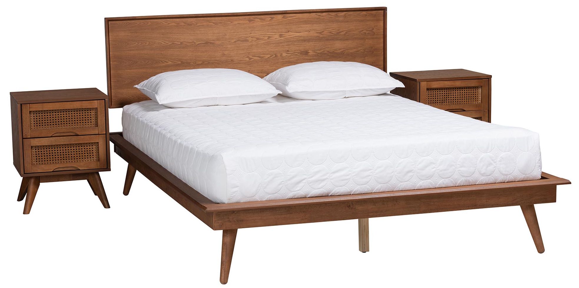 Baxton Studio Camden Mid-Century Wood and Rattan Queen Size Platform Bed
