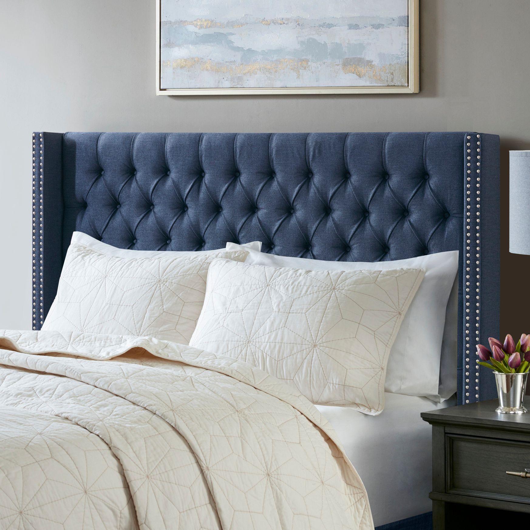Baldwin Navy Blue Fabric Tufted Adjustable Queen Headboard