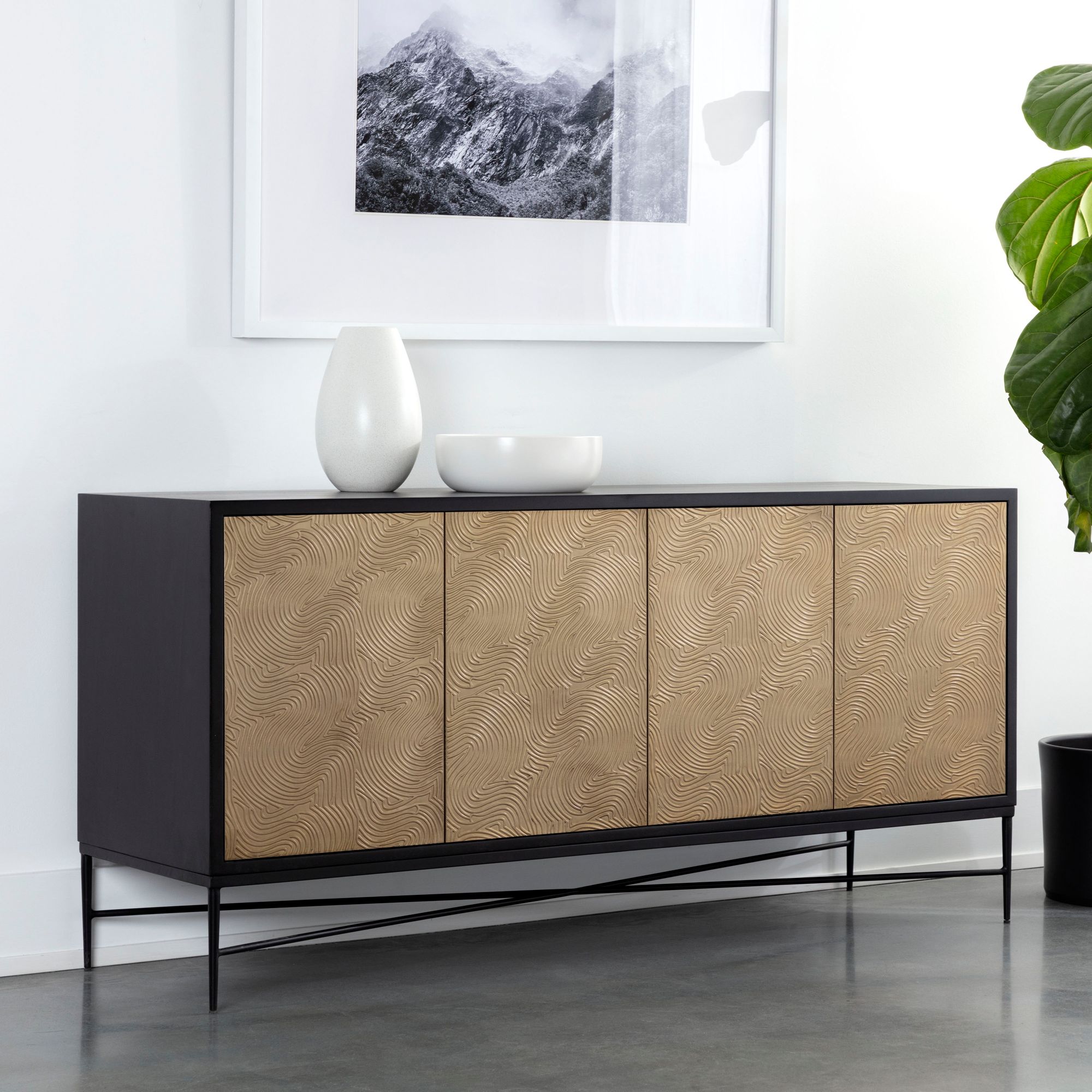 Holland Sideboard Buffet with 4 Doors in Black Brushed Oak Wood