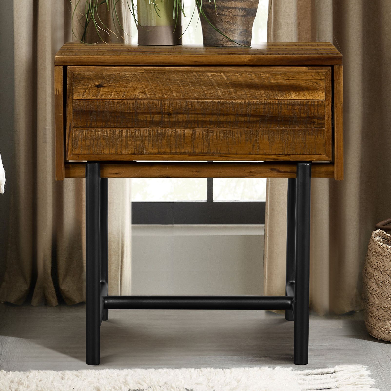 Cusco Nightstand with 1 Drawer in Rustic Acacia Wood