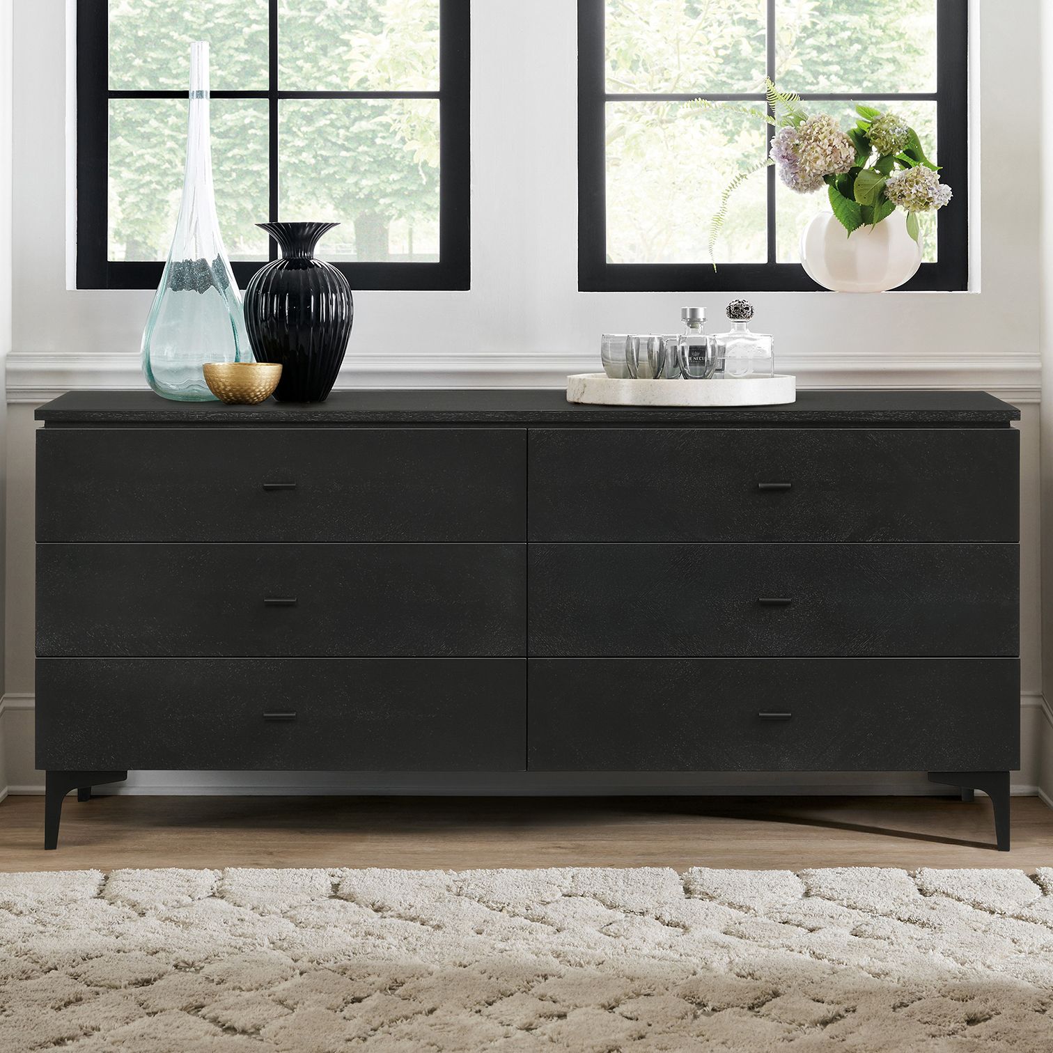 Legend Dresser with 6 Drawers in Black Glaze Ash Veneer and Metal Legs