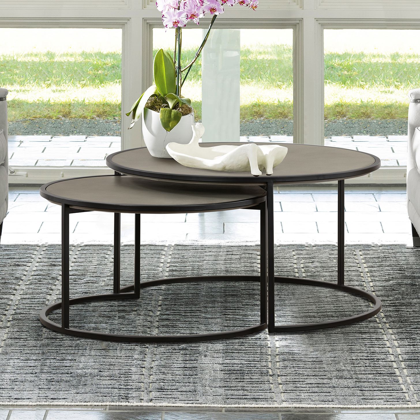 Rina 2 Piece Nesting Coffee Table Set in Concrete and Black Metal