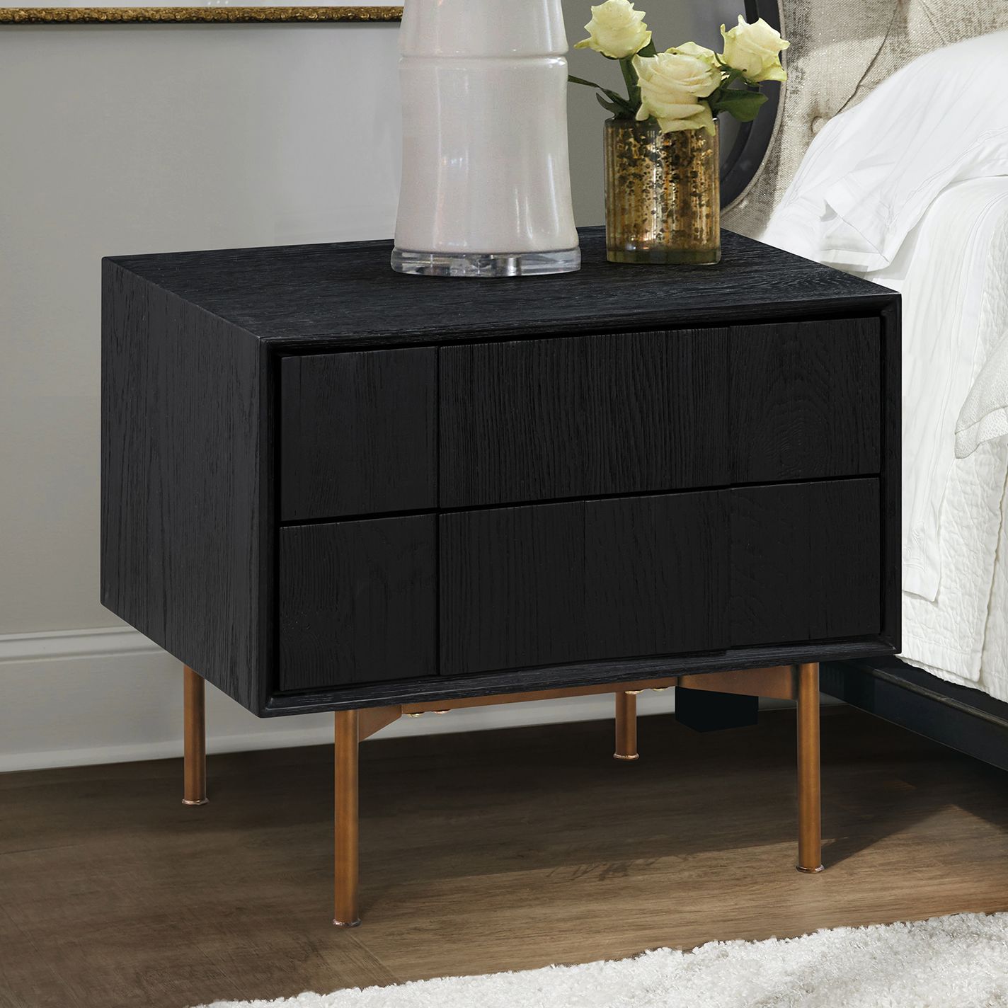 Carnaby Nightstand with 2 Drawers in Black Brushed Oak and Bronze