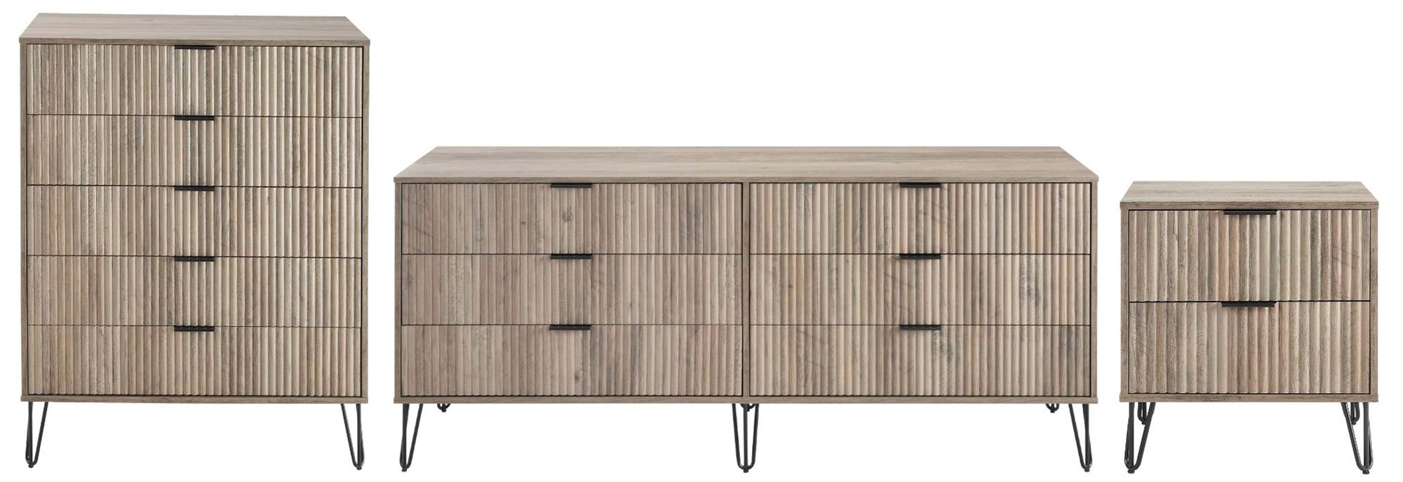 3-Piece DUMBO 5-Drawer Tall Dresser, 6-Drawer Low Dresser, & Nightstand