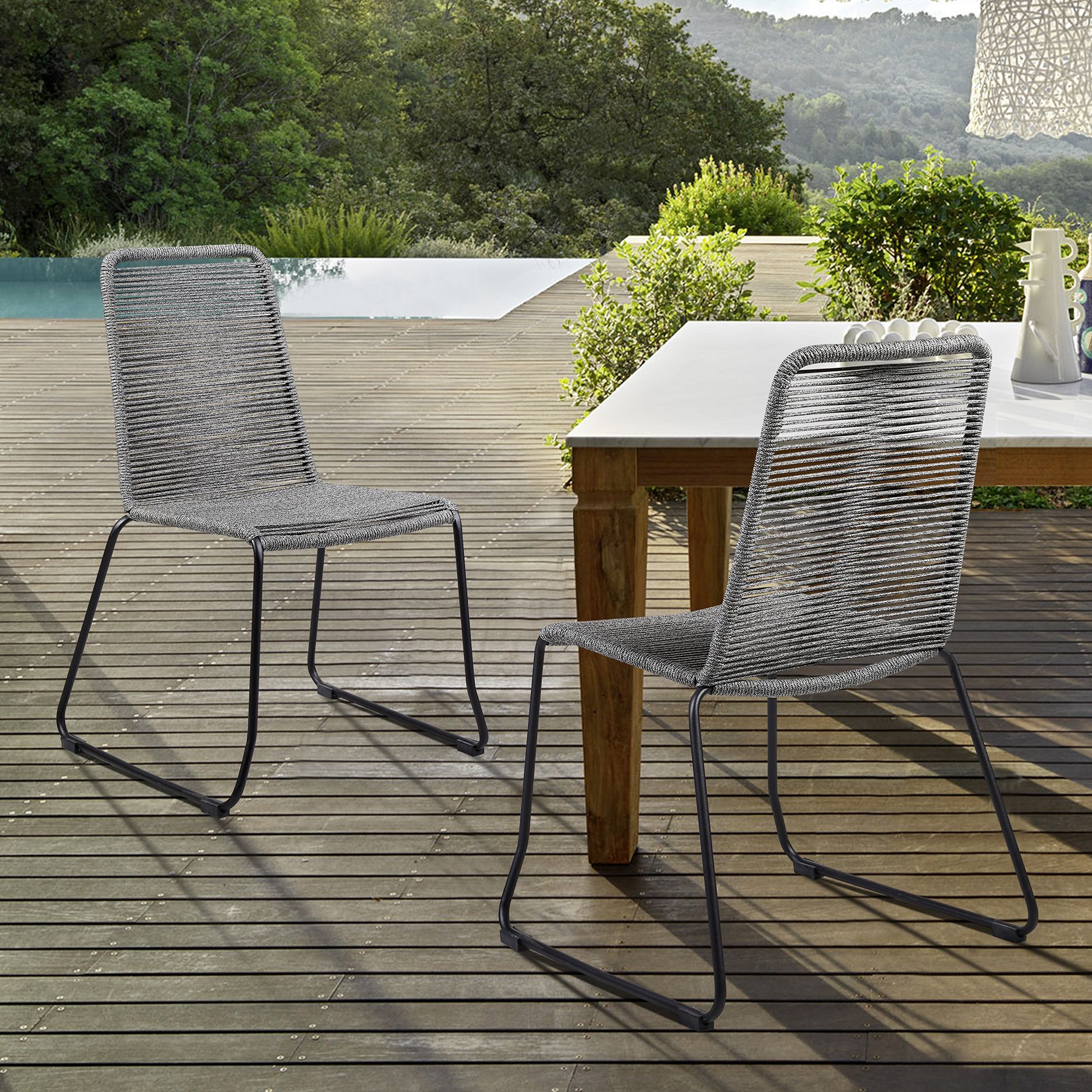 Shasta Set of 2 Outdoor Stackable Dining Chair in Metal and Grey Rope