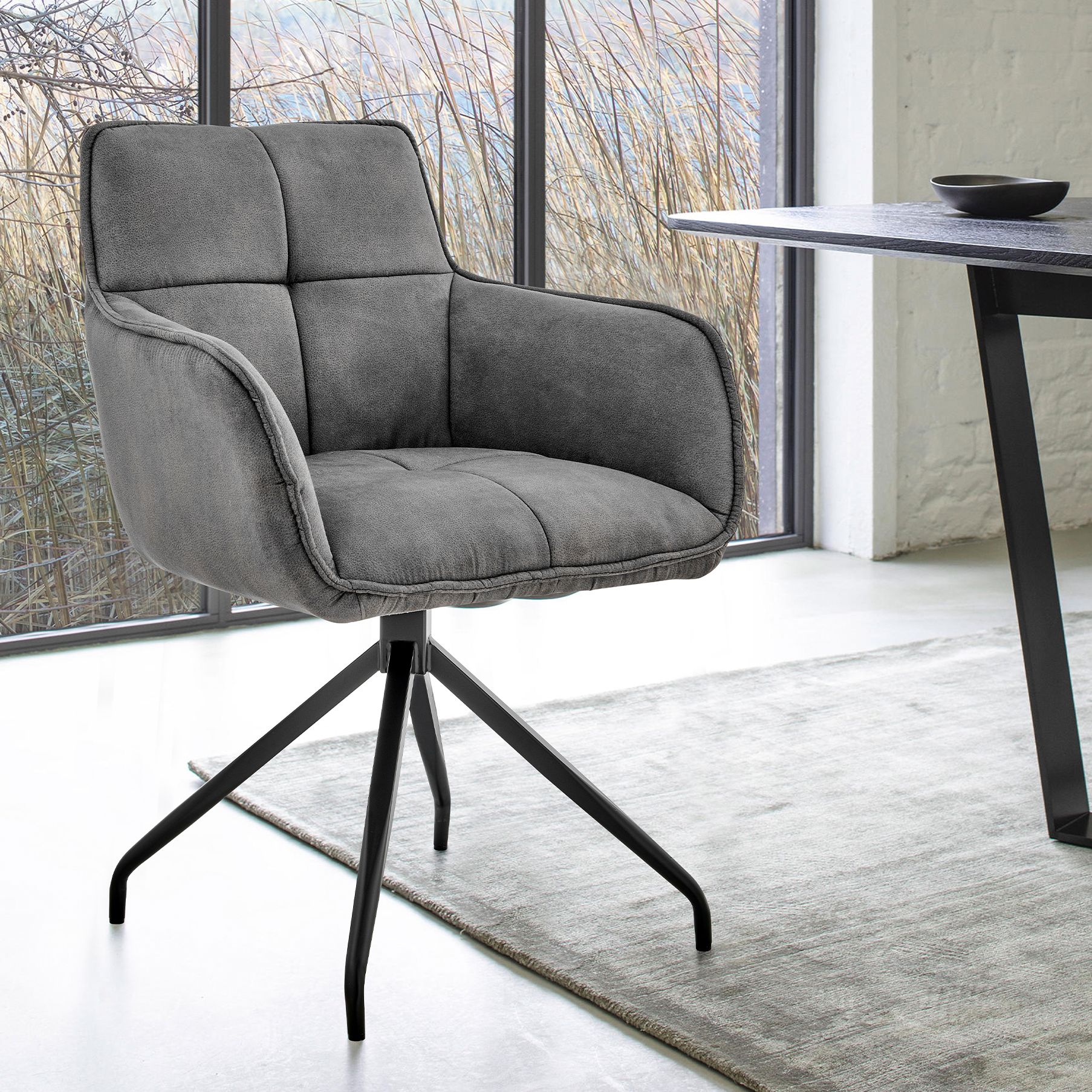 Noah Dining Accent Chair in Charcoal Fabric and Black Metal Legs