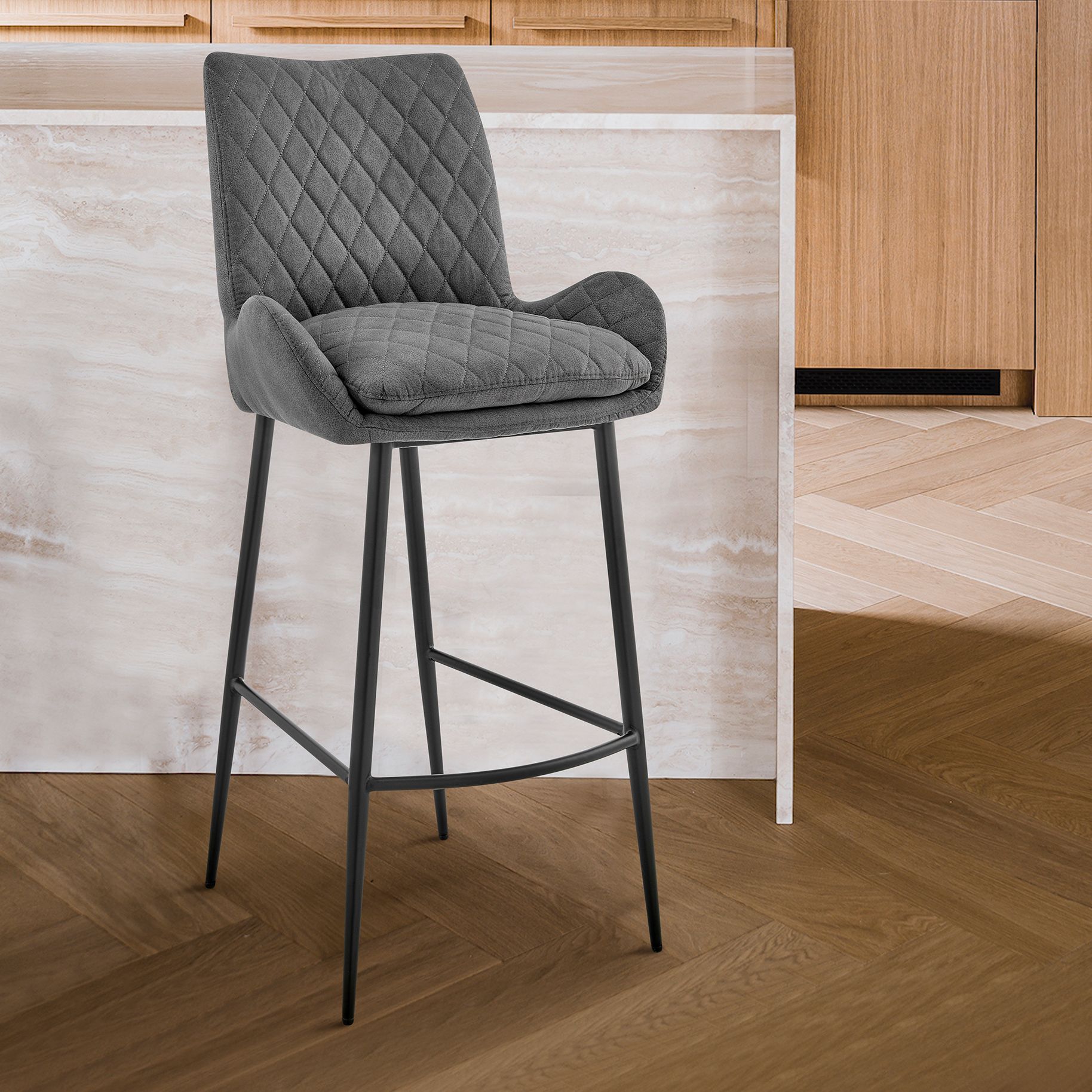 Panama 31 in. Barstool in Black Matte Powder Coating, Charcoal Fabric