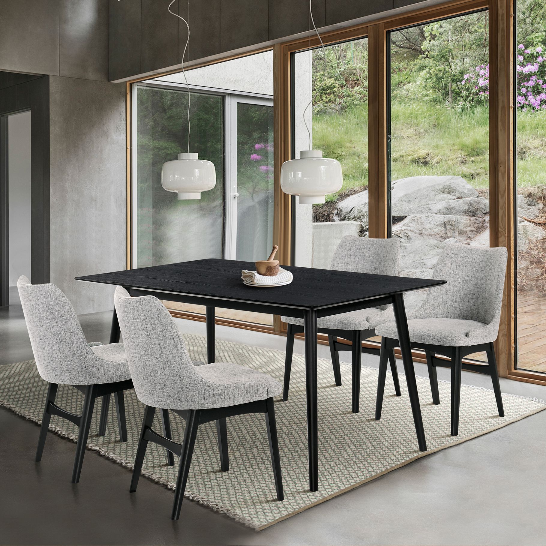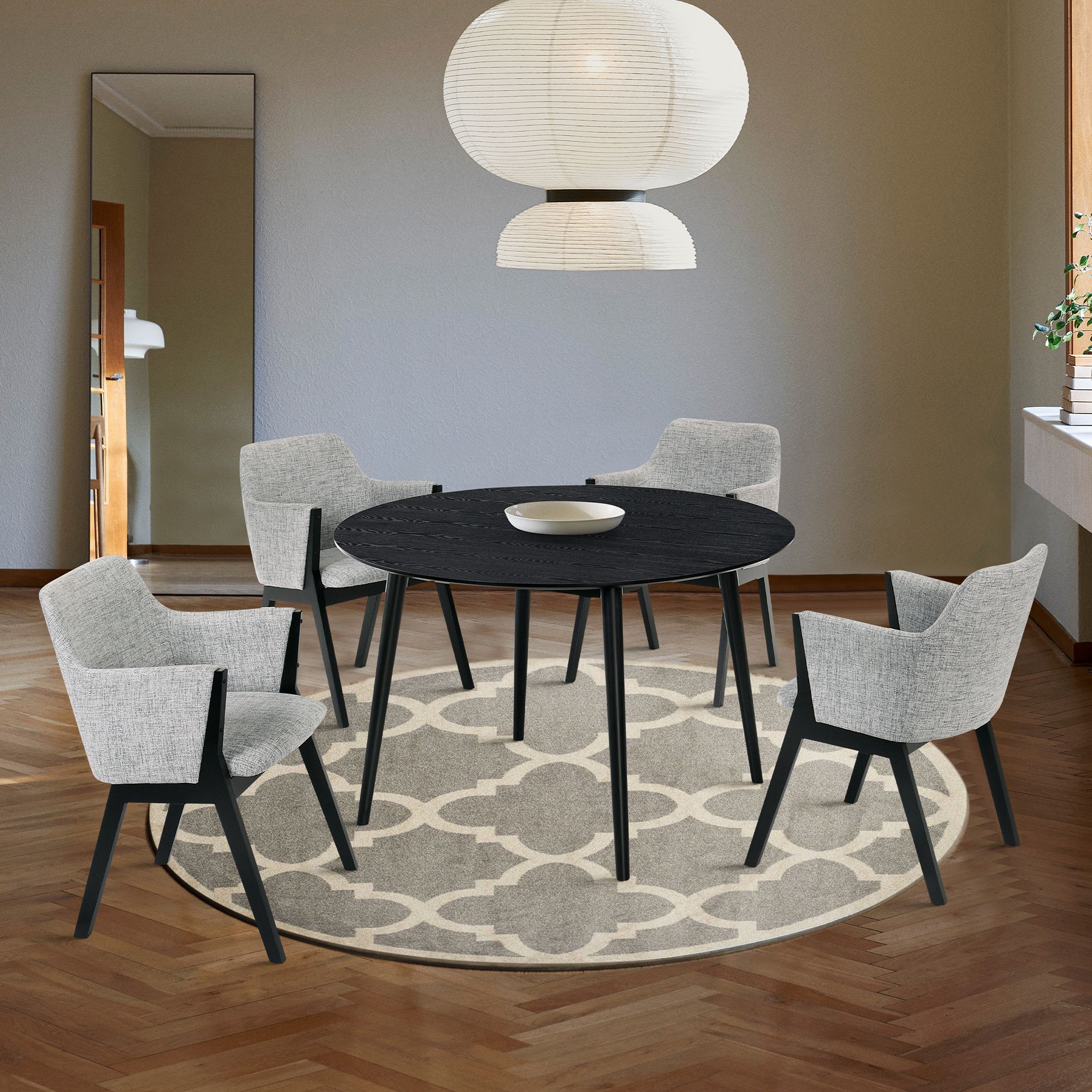 Arcadia and Renzo 5 Piece 48 In. Round Dining Set in Grey, Black Wood