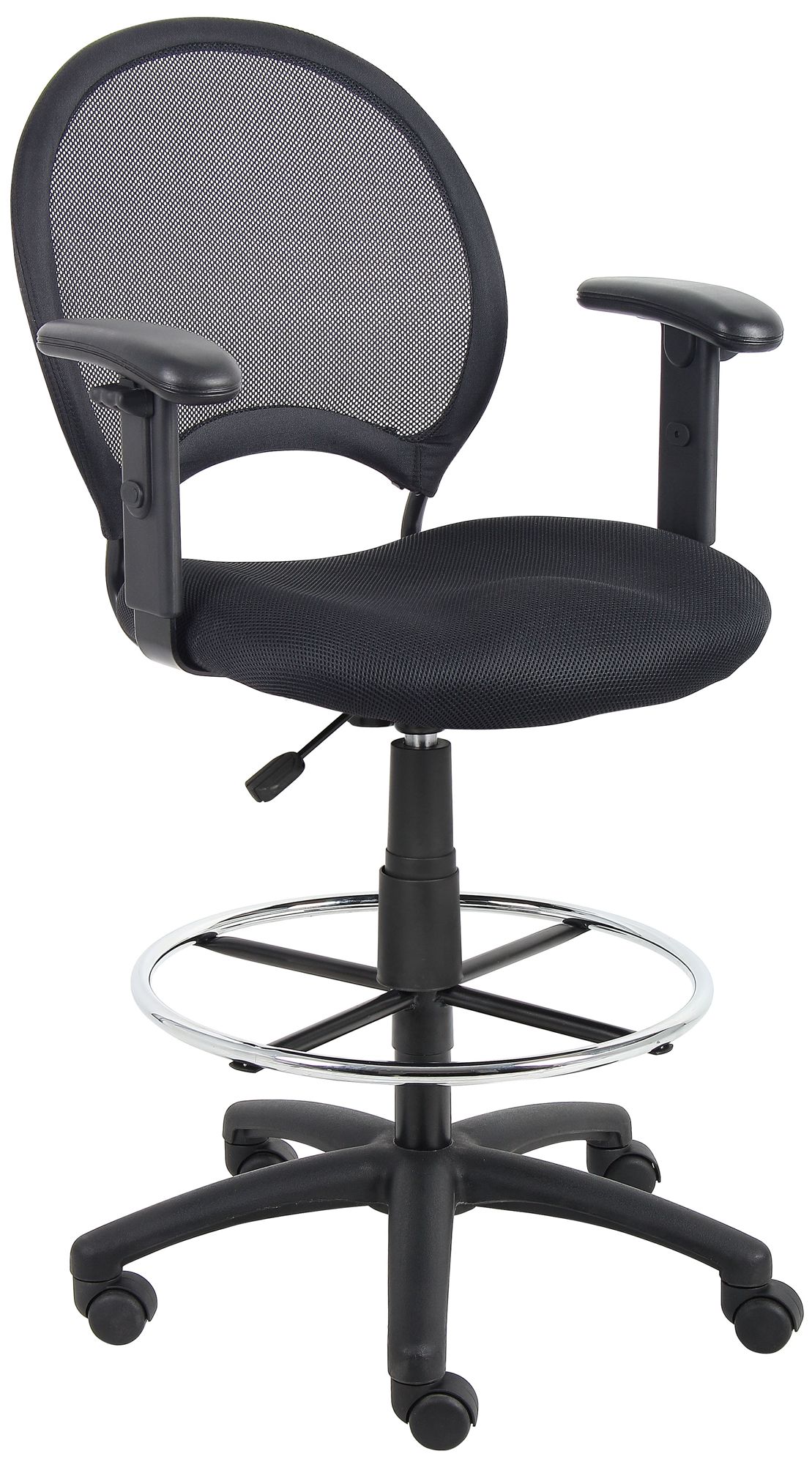 Boss Black Mesh Drafting Stool Chrome Footring with Adjustable Arms