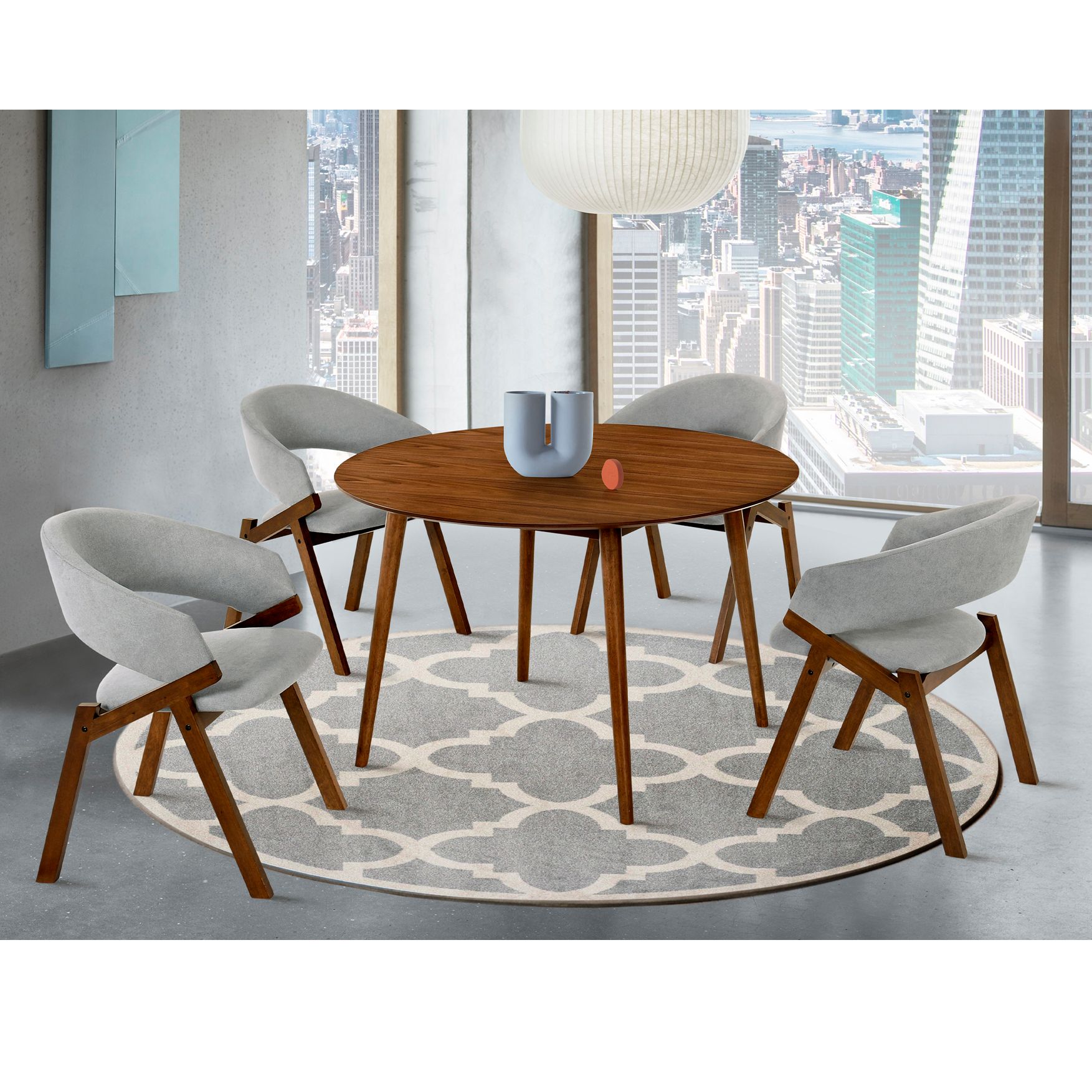 Arcadia and Talulah 5 Piece 48 In. Round Dining Set in Grey and Walnut Wood