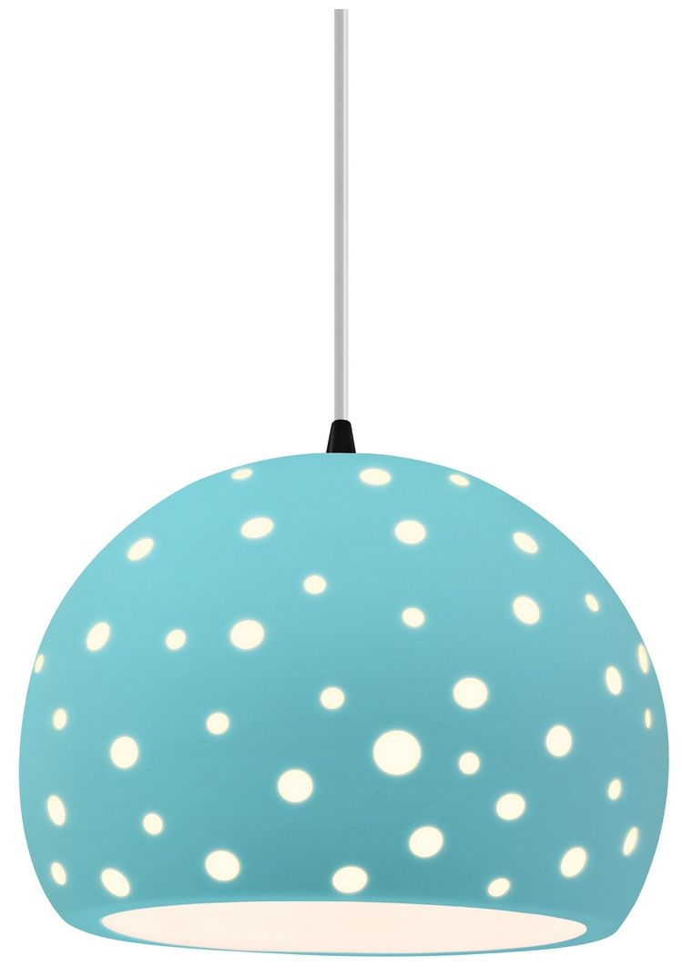 Perforated Globe 7"W Sky Blue, Brushed Nickel Pendant - White Cord