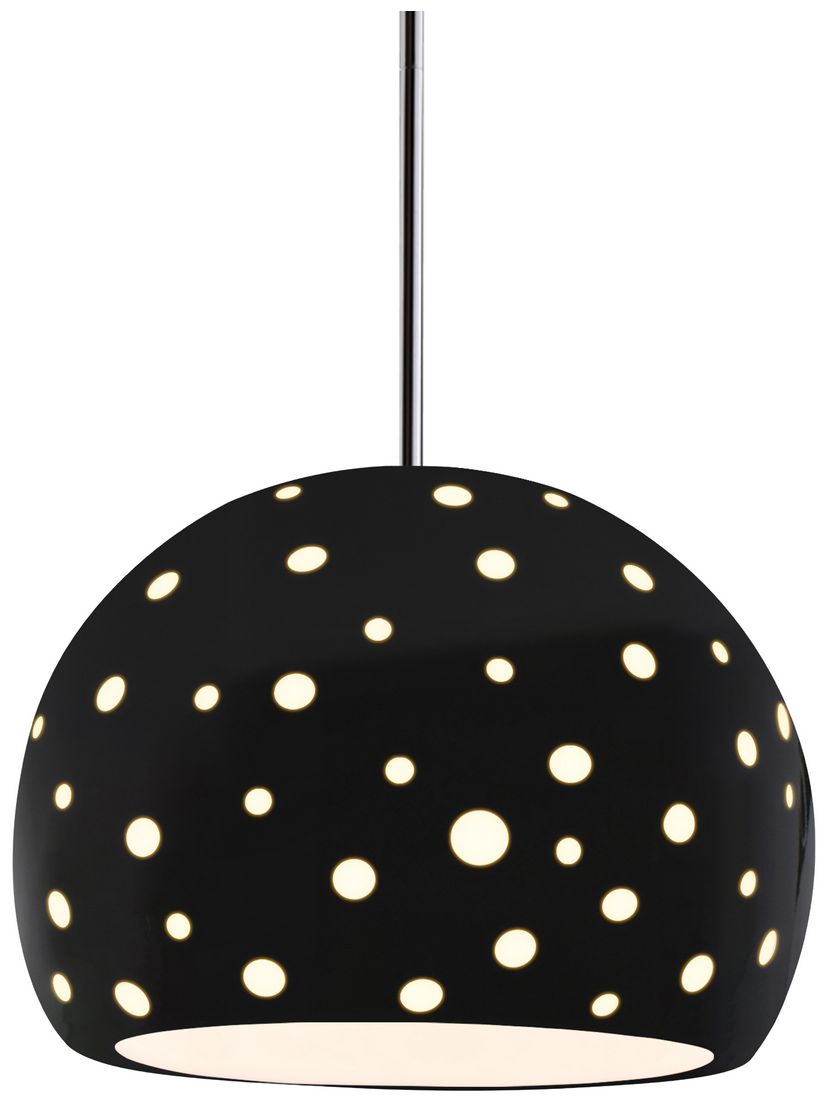 Perforated Globe 12.25"W Gloss Black, Chrome LED Pendant - White Cord