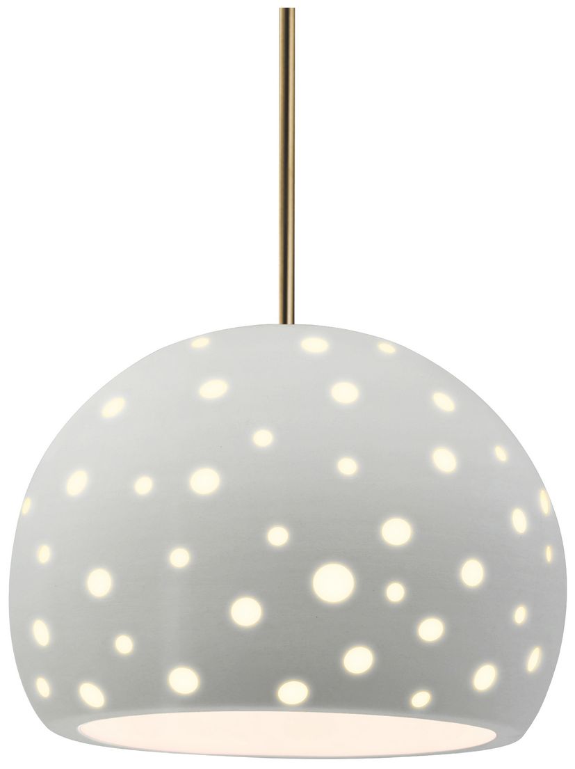Perforated Globe 12.25"W Matte White, Antique Brass LED Pendant-White Cord