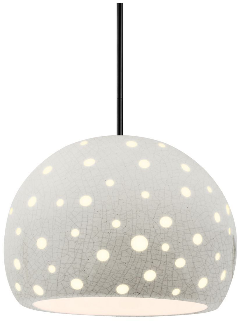 Perforated Globe 12.25"W White Crackle, Matte Black LED Pendant-White Cord