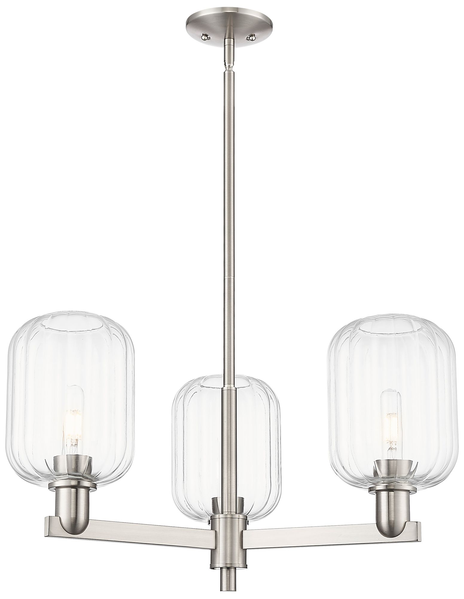 Preston 18"W 3 Light Satin Nickel Stem Chandelier With Clear Jar Shade