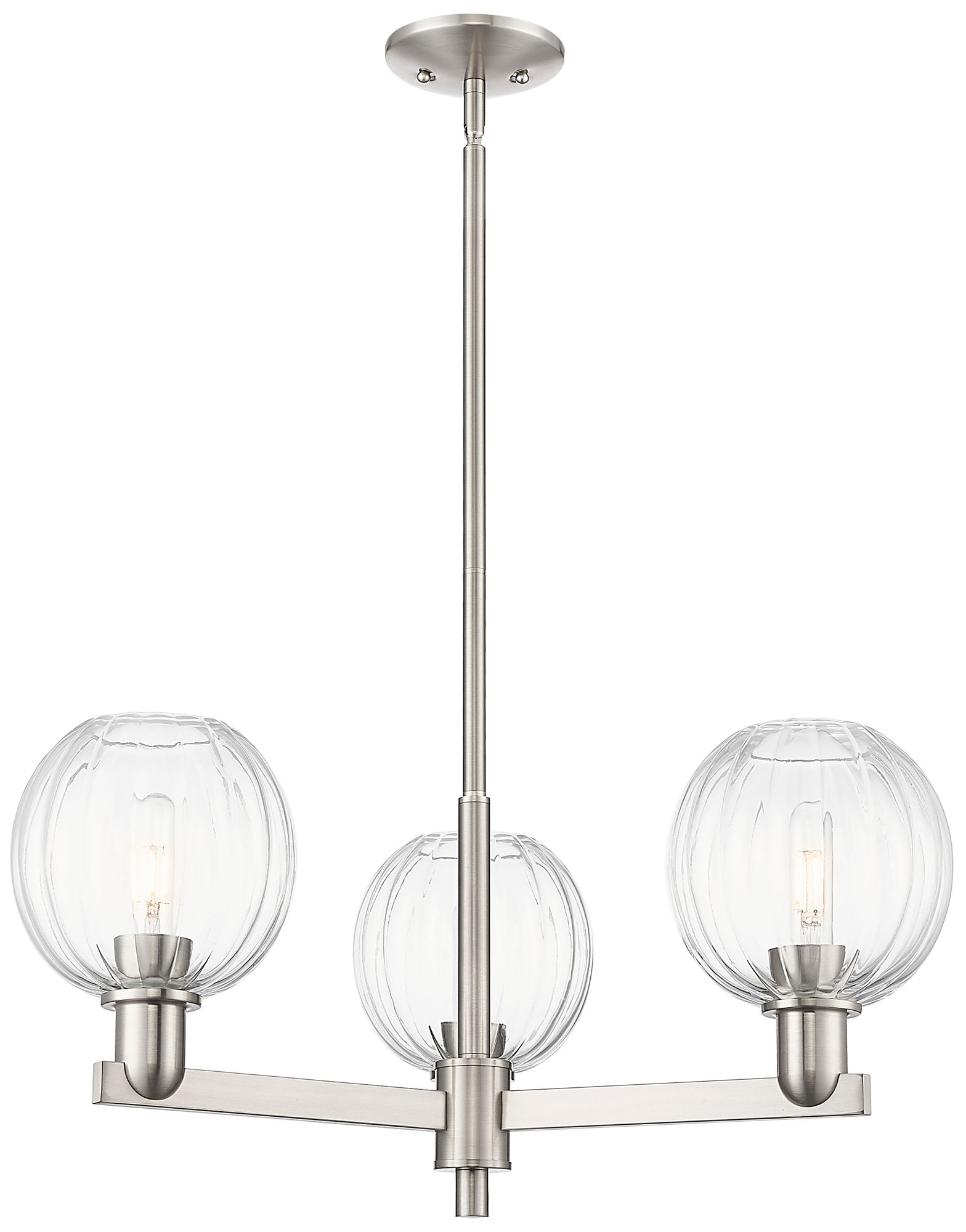 Preston 18"W 3 Light Satin Nickel Stem Chandelier w/ Clear Globe Shade