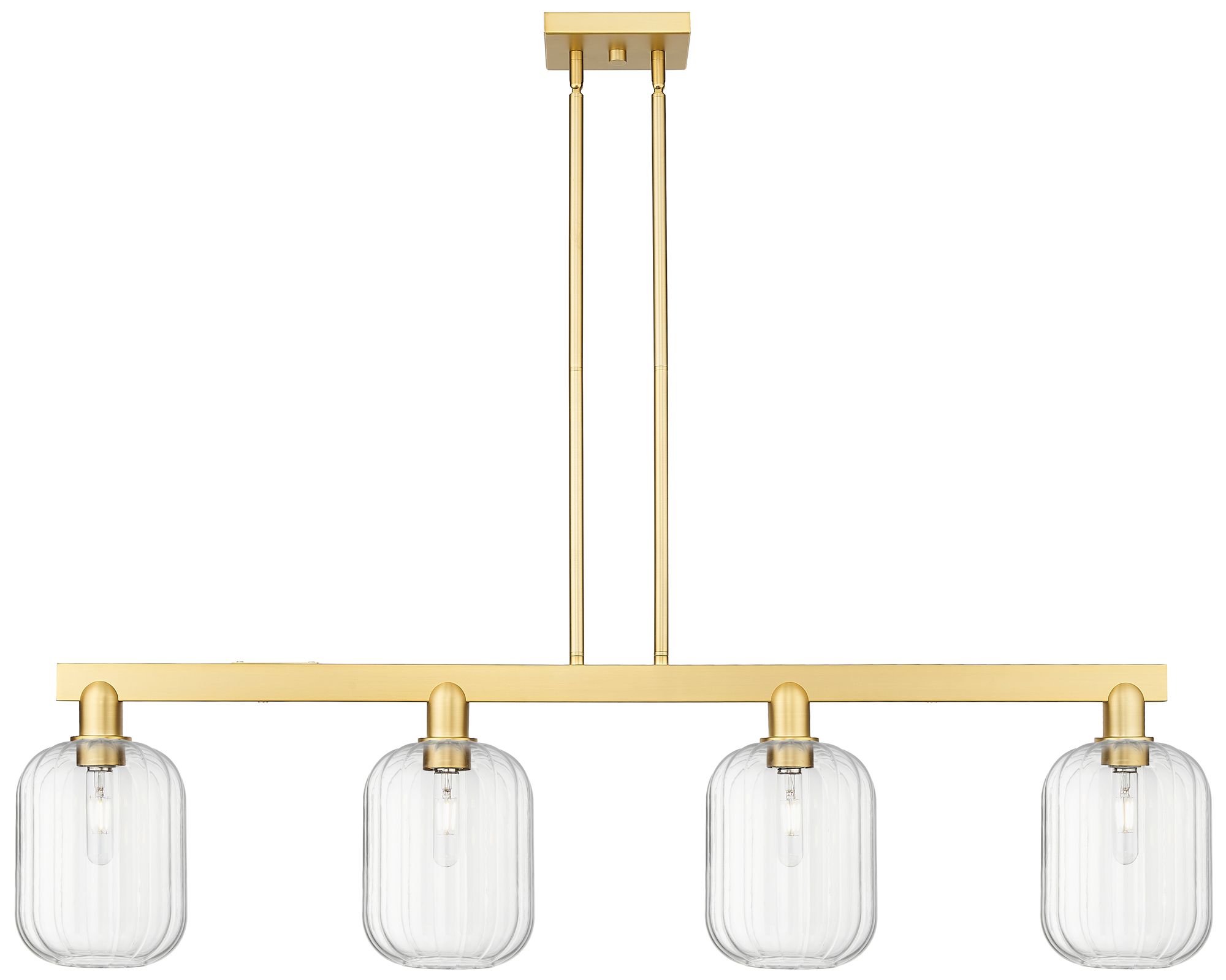 Preston 48"W 4 Light Satin Gold Stem Island Light With Clear Jar Shade