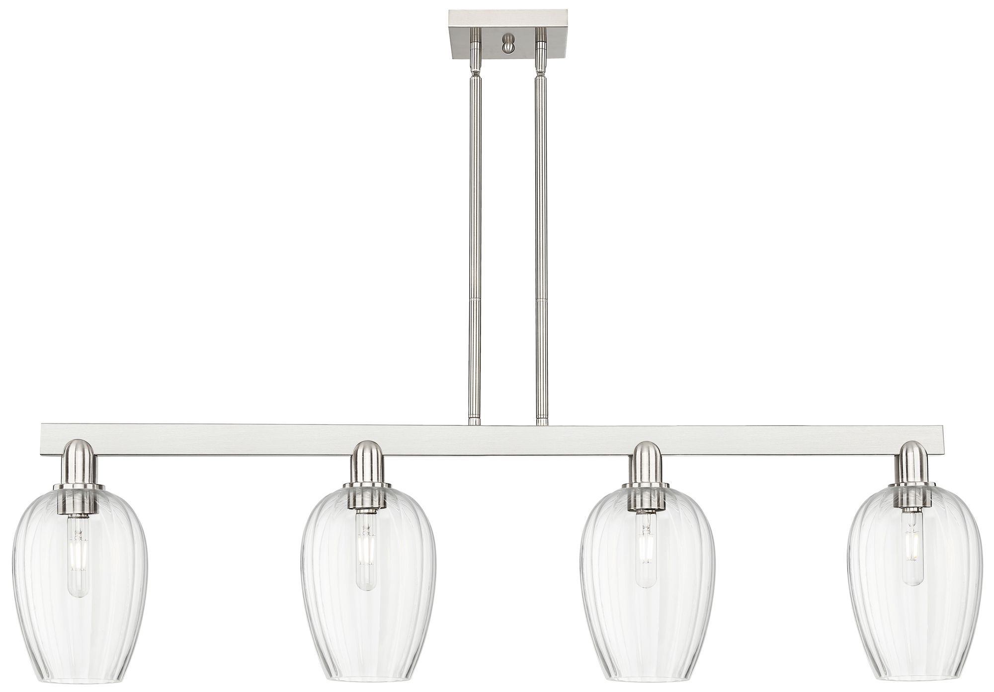 Preston 48"W 4-Lt Satin Nickel Stem Island-Lt w/ Flute Clear Shade