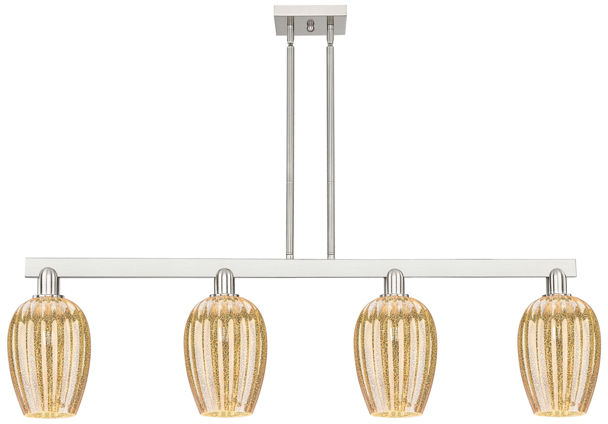 Preston 48"W 4-Lt Satin Nickel Stem Island-Lt w/ Flute Mercury Shade