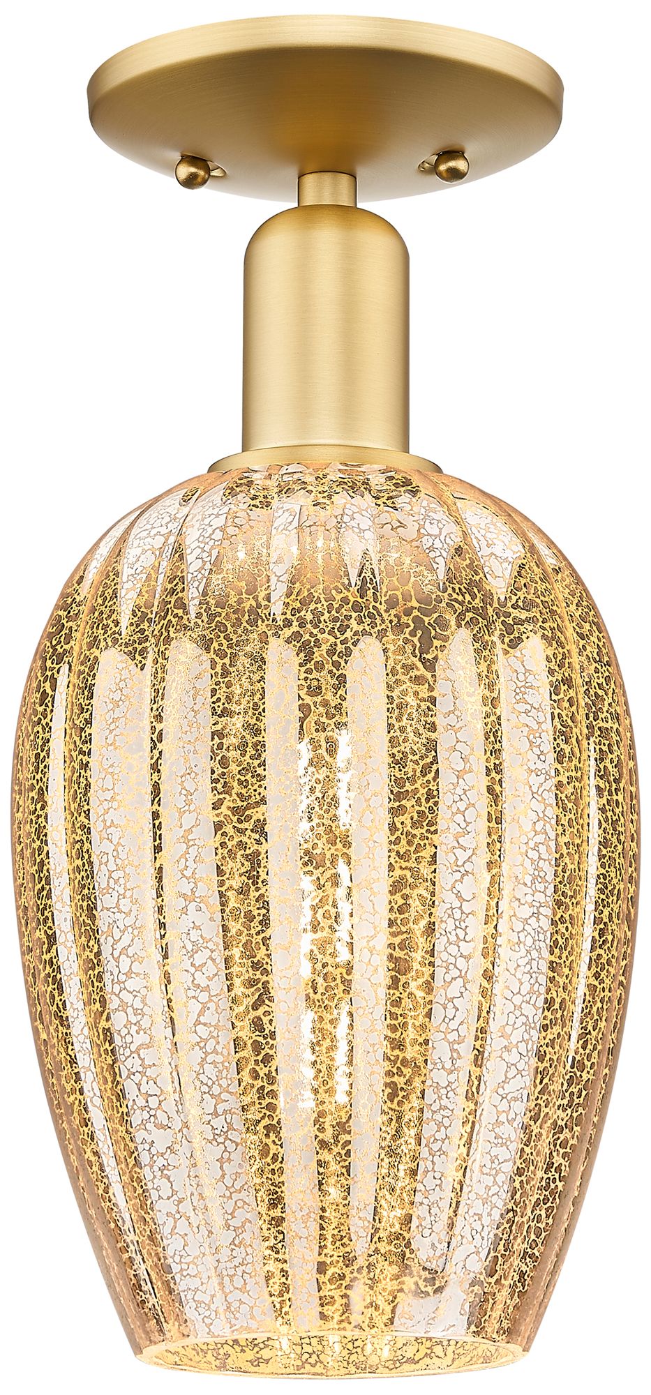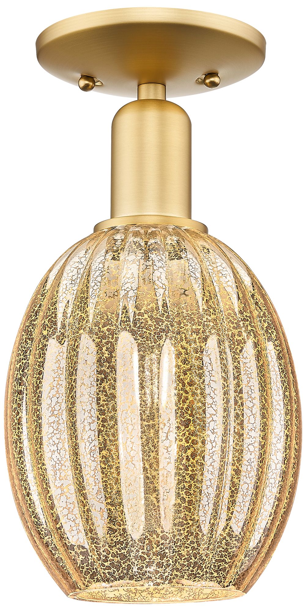 Preston 6" Wide Satin Gold Semi-Flush Mount With Bulb Mercury Shade