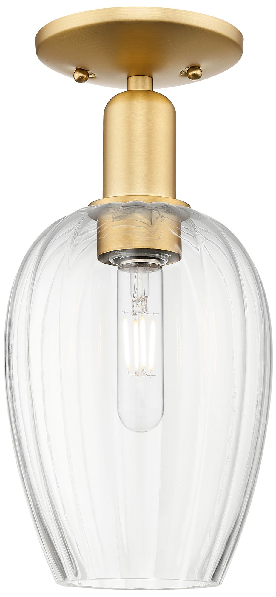 Preston 6" Wide Satin Gold Semi-Flush Mount With Flute Clear Shade