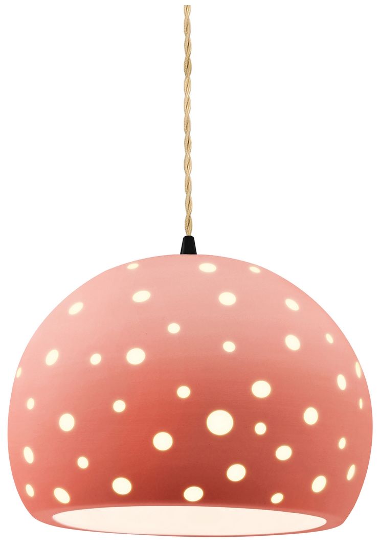 Perforated Globe 10"W Gloss Blush, Matte Black Pendant - White Cord