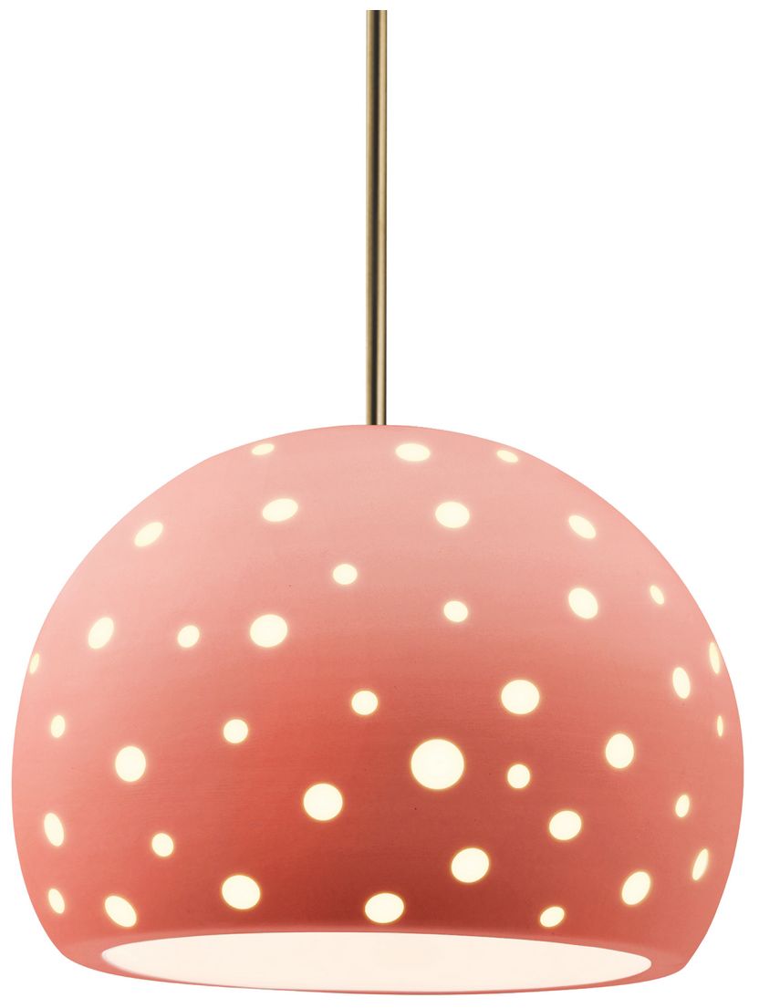 Perforated Globe 10"W Gloss Blush, Antique Brass Pendant - Rigid Stem