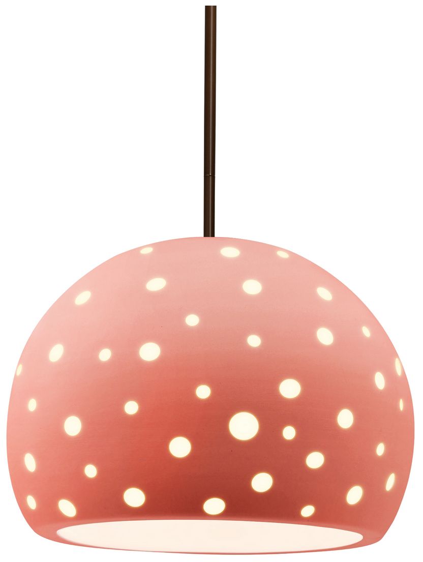Perforated Globe 10"W Gloss Blush, Dark Bronze Pendant - Rigid Stem