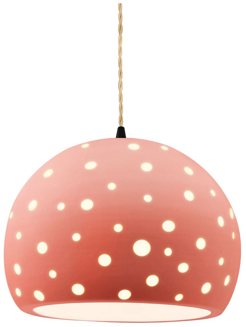 Perforated Globe 12.25"W Gloss Blush, Matte Black Pendant - Rigid Stem
