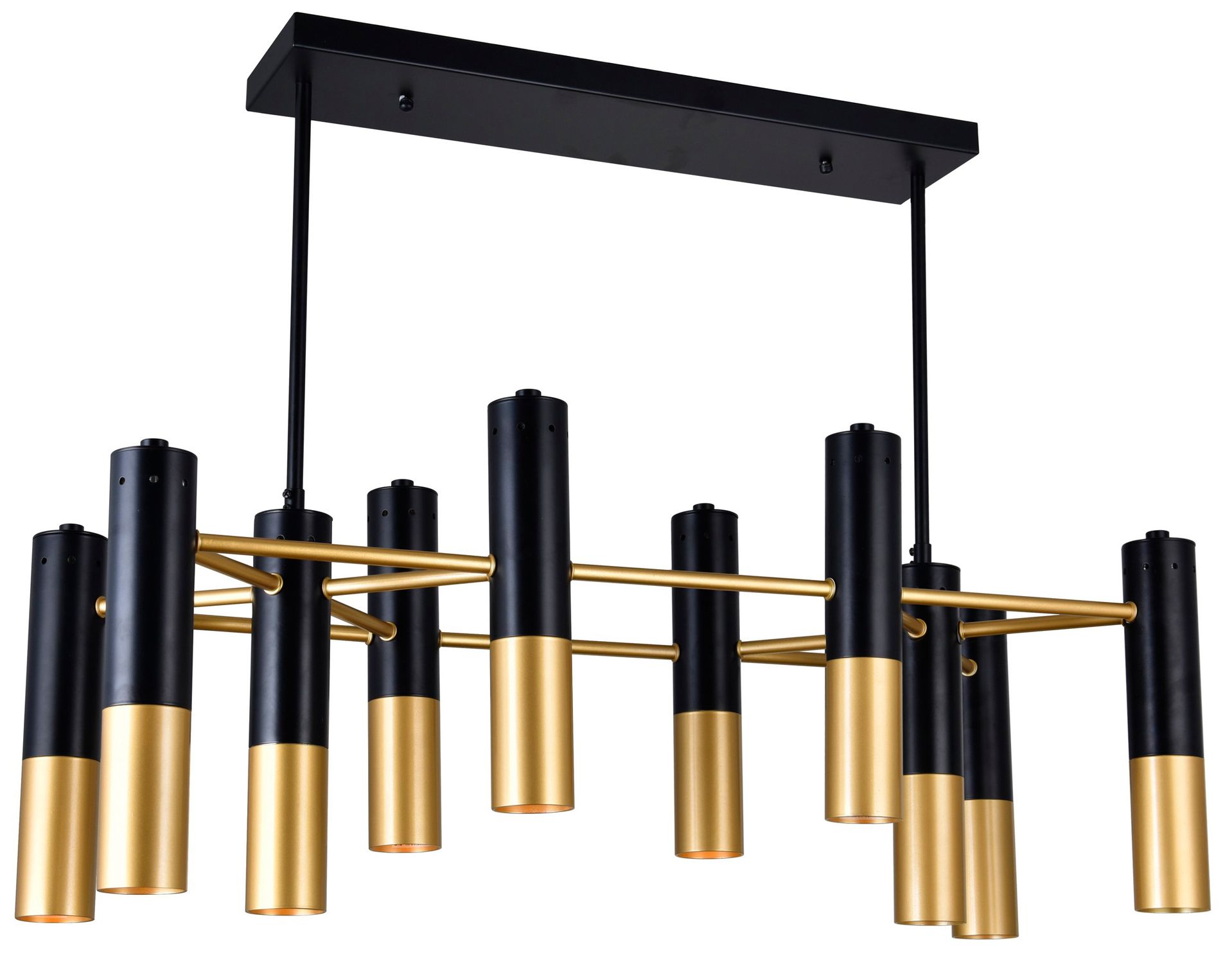 Anem 10 Light Down Chandelier With Matte Black & Satin Gold Finish