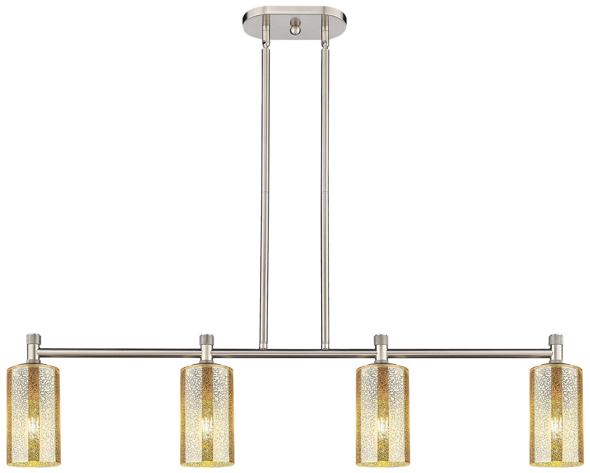 Downtown Crown Point 44"W Satin Nickel Island Light w/ Mercury Shade