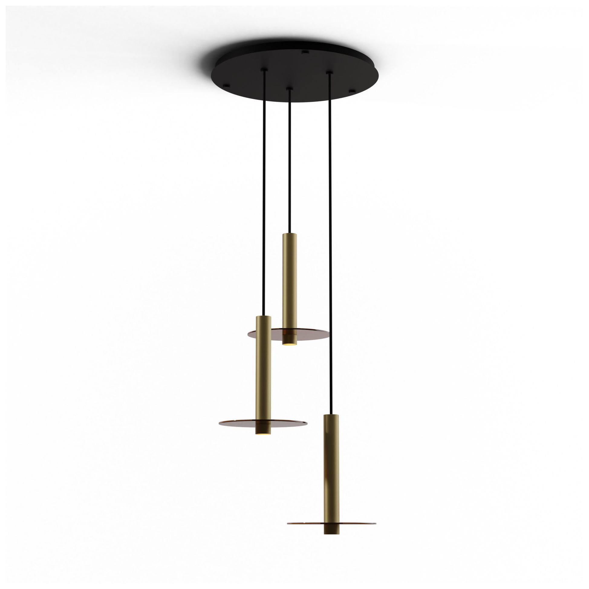 Koncept Combi Pendant 12" Circular 3Brass, 9" glass plate ( Brown)