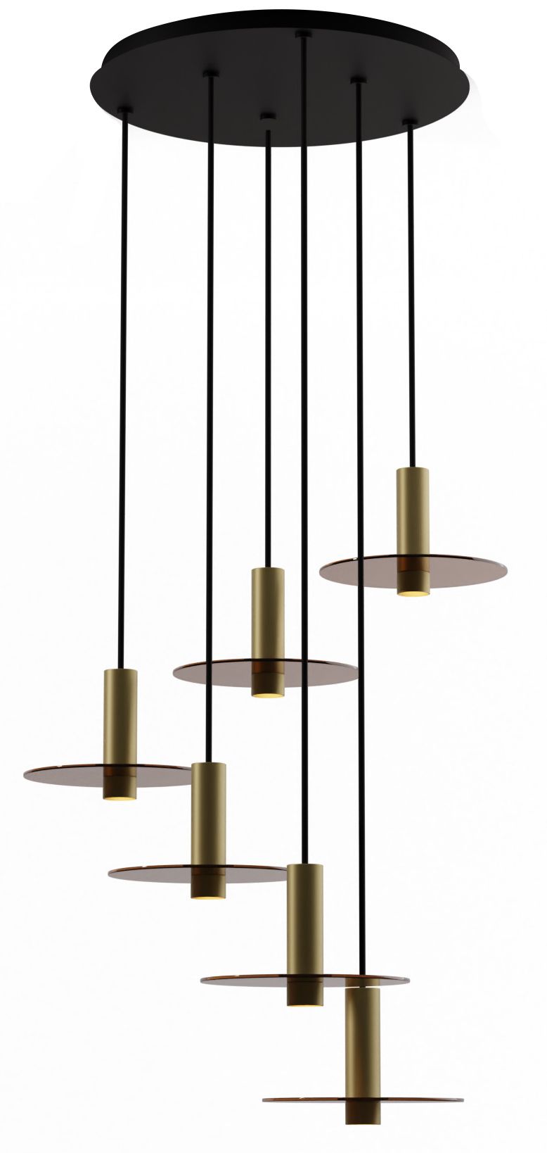 Koncept Combi Pendant 6" Circular 6Brass, 9" glass plate ( Brown)