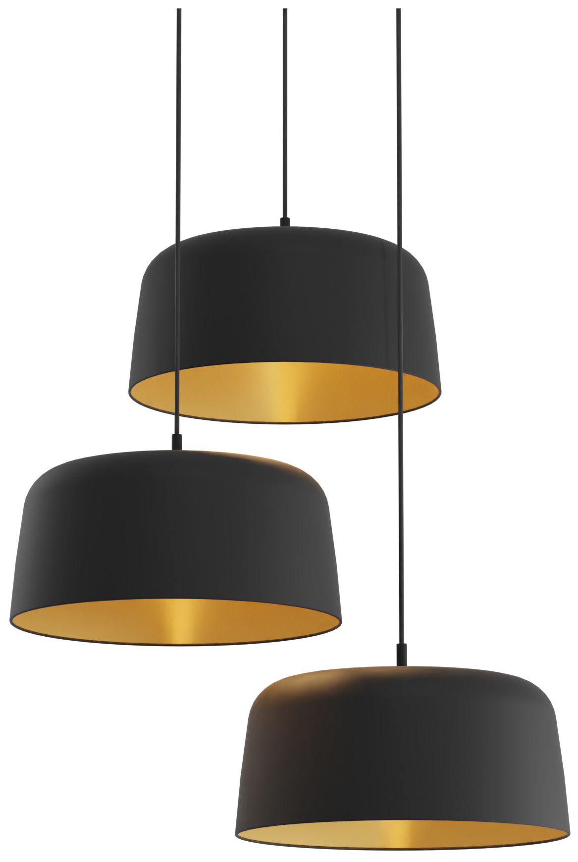 Koncept Yurei Circular 3 Pendant Lamp w 14" Metal Shade Blk w Gold Interior