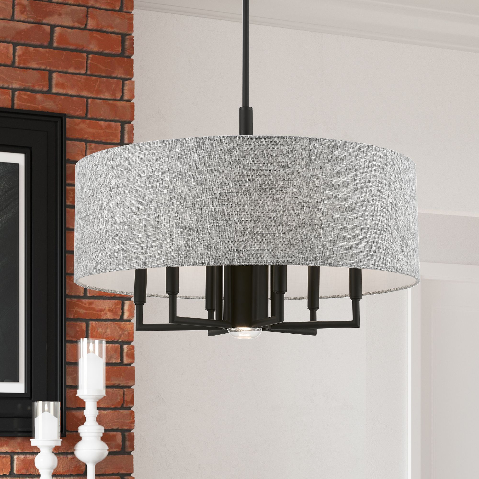 Livex Lighting Elmhurst 26" Wide 5-Light Black Gray Drum Pendant