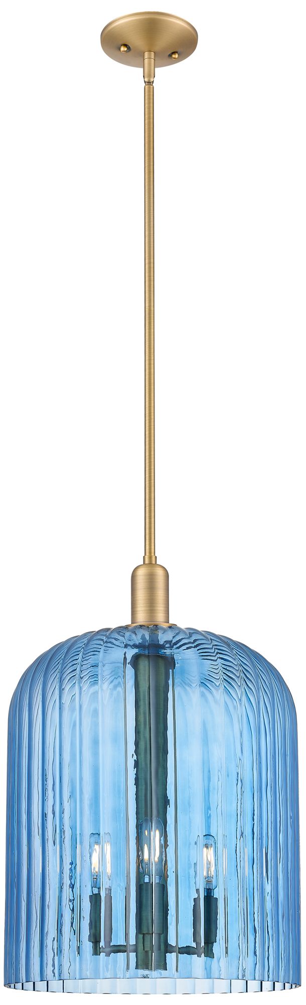Downtown Bridal Veil 12"W 3 Light Brushed Brass Mini Pendant w/ Blue