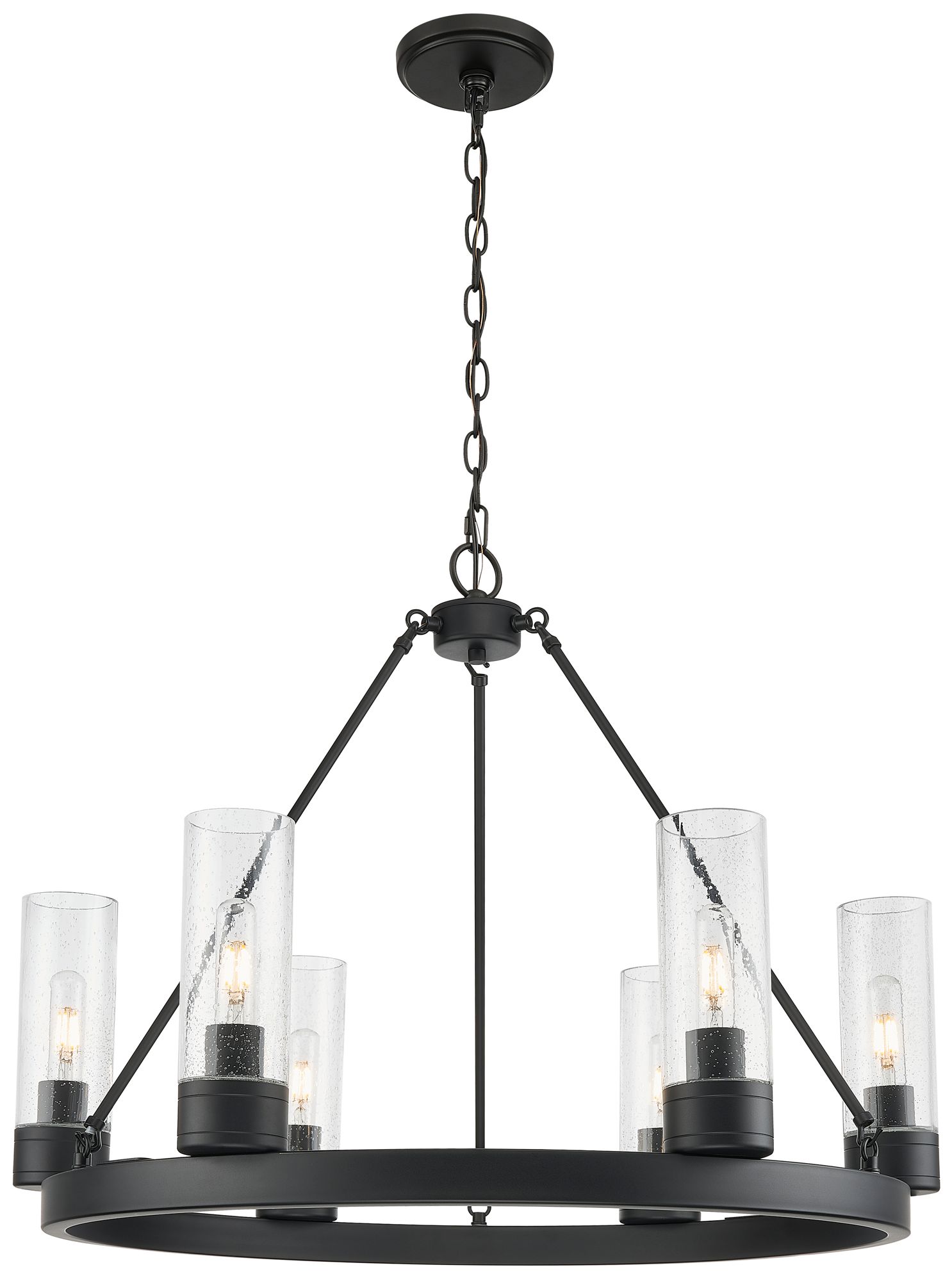 Boreas 29" Wide 6 Light Matte Black Chandelier With 8" Seedy Shade