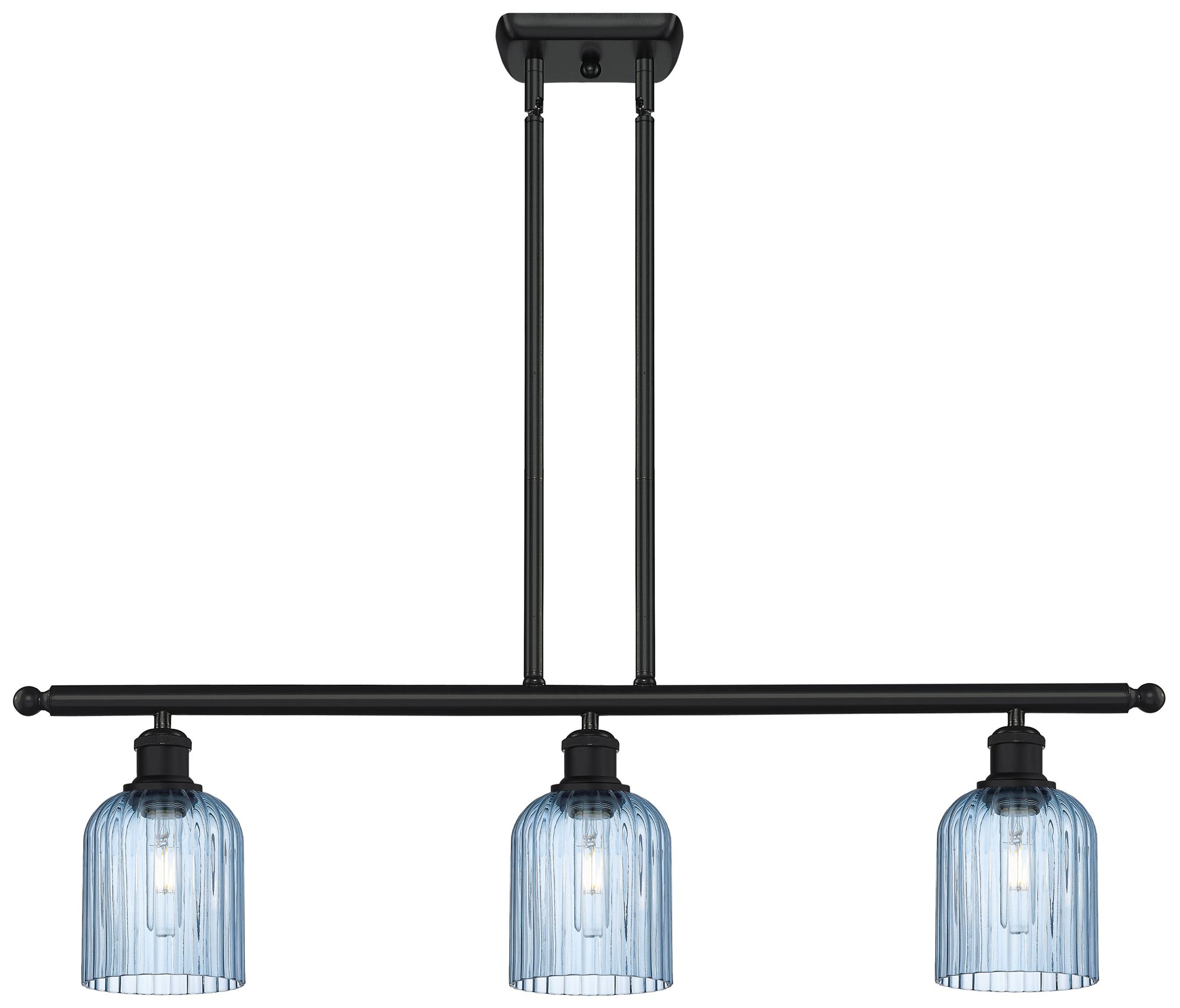 Ballston Bridal Veil 3 Light 36" Stem Hung Island Light Black & Blue Shade