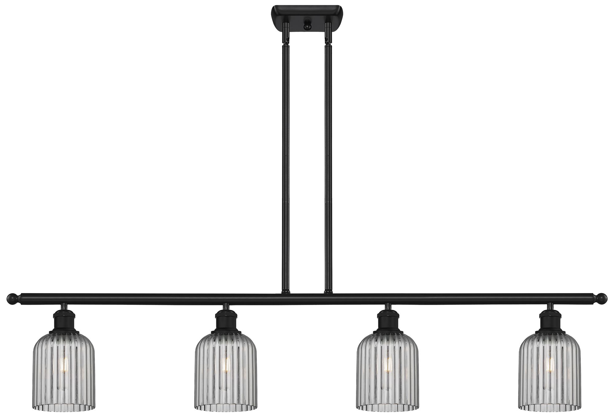 Ballston Bridal Veil 4 Light 48" Stem Hung Island Light Black & Smoke Shade