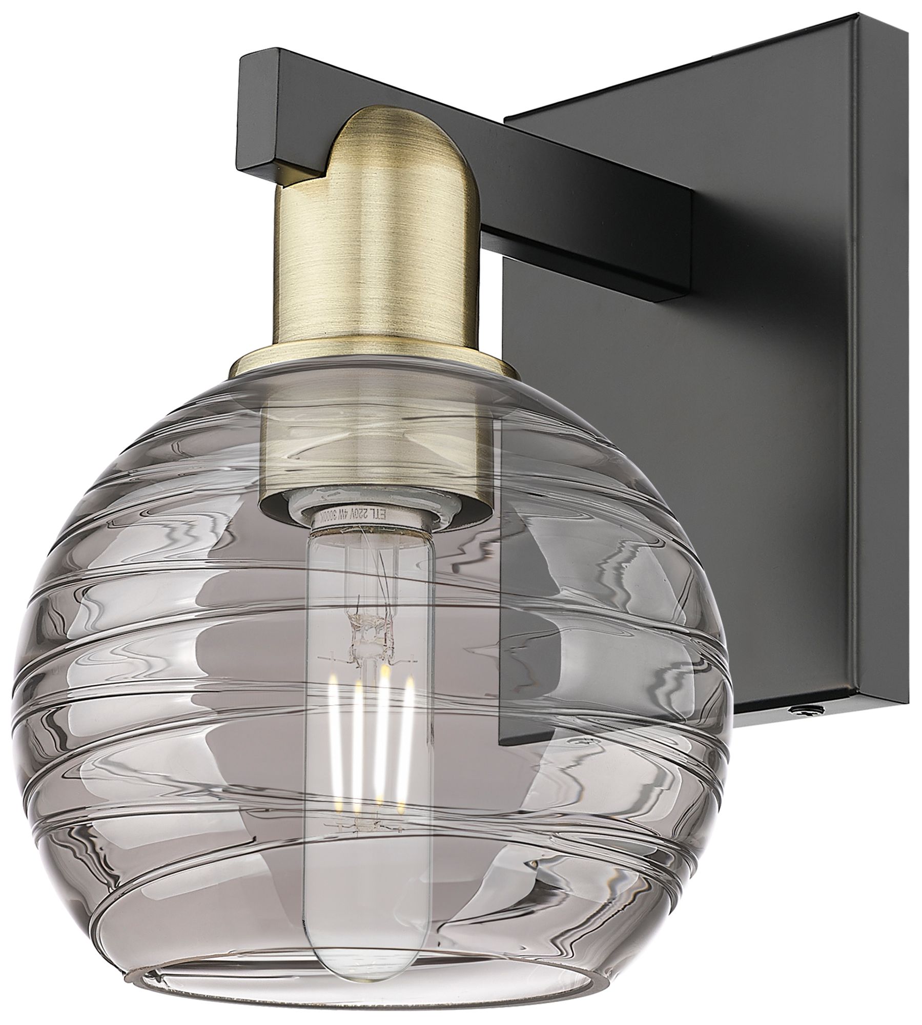 Athens Deco Swirl 11"H Black Brass Wall Sconce With Light Smoke Shade