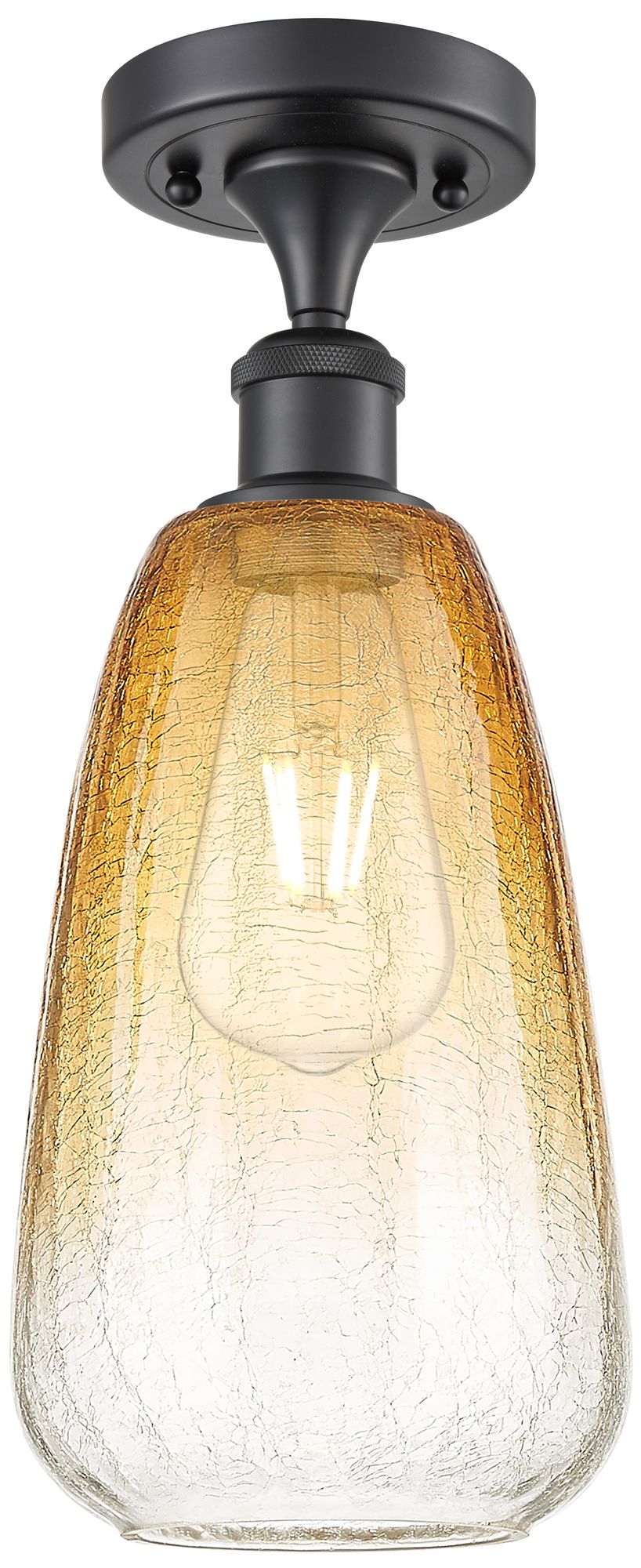 Ballston Brookhaven Globe 8"W Black Semi.Flush Mount w/ Amber Shade